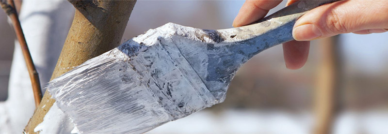 Для защиты от растрескивания коры, распространения патогенных спор и предотвращения солнечных ожогов в зимний период, стволы подлежат побелке. Кроме того, в коре зимуют вредители, и такая обработка поможет избавиться от них. Также побелка повышает стойкость плодовых деревьев к заморозкам и резким температурным перепадам и в то же время не препятствует естественному воздухообмену.