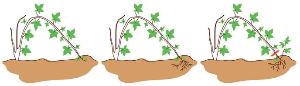 Тут нужный побег пришпиливается к земле в одном месте, а его конец поднимется и фиксируется вертикально к колышку. При этом, ветки приобретают дугообразную форму. Чаще всего так размножают: рододендроны, виноград, айву, смородину, крыжовник и т. д.