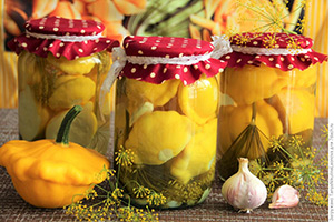 Отберите небольшие, слегка недозрелые экземпляры. Для засолки целиком у патиссонов должна быть молодая тонкая кожица. Идеально, если вы возьмете сорта разных цветовых окрасок. Так блюдо будет выглядеть еще более привлекательно.