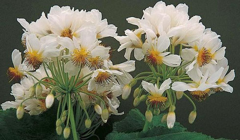 В основном, все они белого цвета, с содержанием в центре ярко-желтых тычиночных образований. Цветение долгое, отцветшие цветоносы срезают.