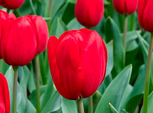 Самым популярным, считается класс Триумф. Он занимает больше 60% голландских полей среди всех тюльпанов. Класс отличается крупными бутонами, мощными стеблями и высоким, до 70 см ростом.