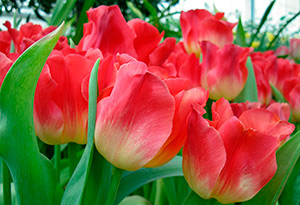 В настоящее время выведено более четырех тысяч сортов тюльпанов. Диаметр некоторых достигает более 20 см. Лепестки имеют самую разнообразную окраску. От белоснежной до насыщенно фиолетовой. Форма также варьируется и может быть овальной, махровой, бахромчатой и т.д. Тюльпаны прекрасно смотрятся в букетах, а также на клумбах и бордюрных композициях.
