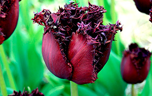 Этот бахромчатый вид притягивает своим роскошным бутоном, который может достигать в диаметре 14 см. Цветок имеет благородный темно-бордовый оттенок с черноватым отливом. По краям лепестков у тюльпана имеется шикарная игольчатая бахрома. Высота стебля – 50 см. Цветение проходит в мае. Сильным толстым стеблям «Лабрадора» не страшен сильный ветер и непогода. Отлично стоит в срезке и на клумбе.