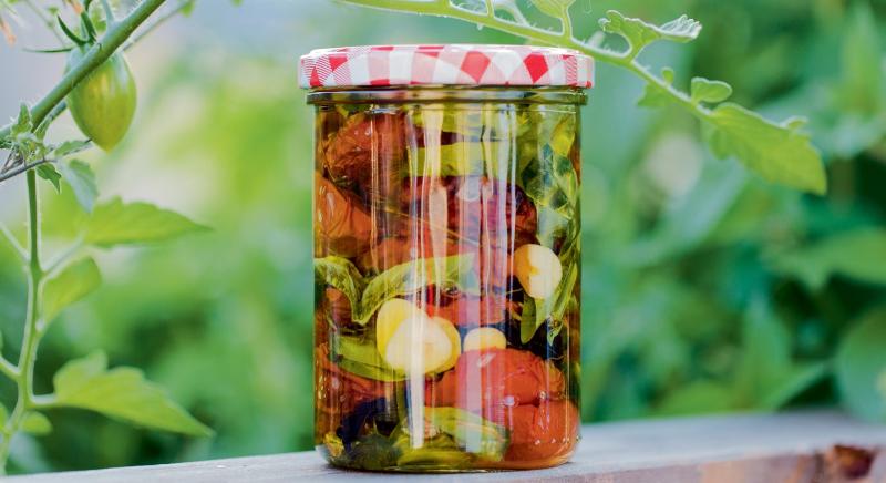 Томаты консервируются в масле. Когда откроете баночку и скушаете все томаты, оставшееся масло можно использовать по привычному назначению. За счет приправ и чеснока, масло станет более ароматным и вкусным.