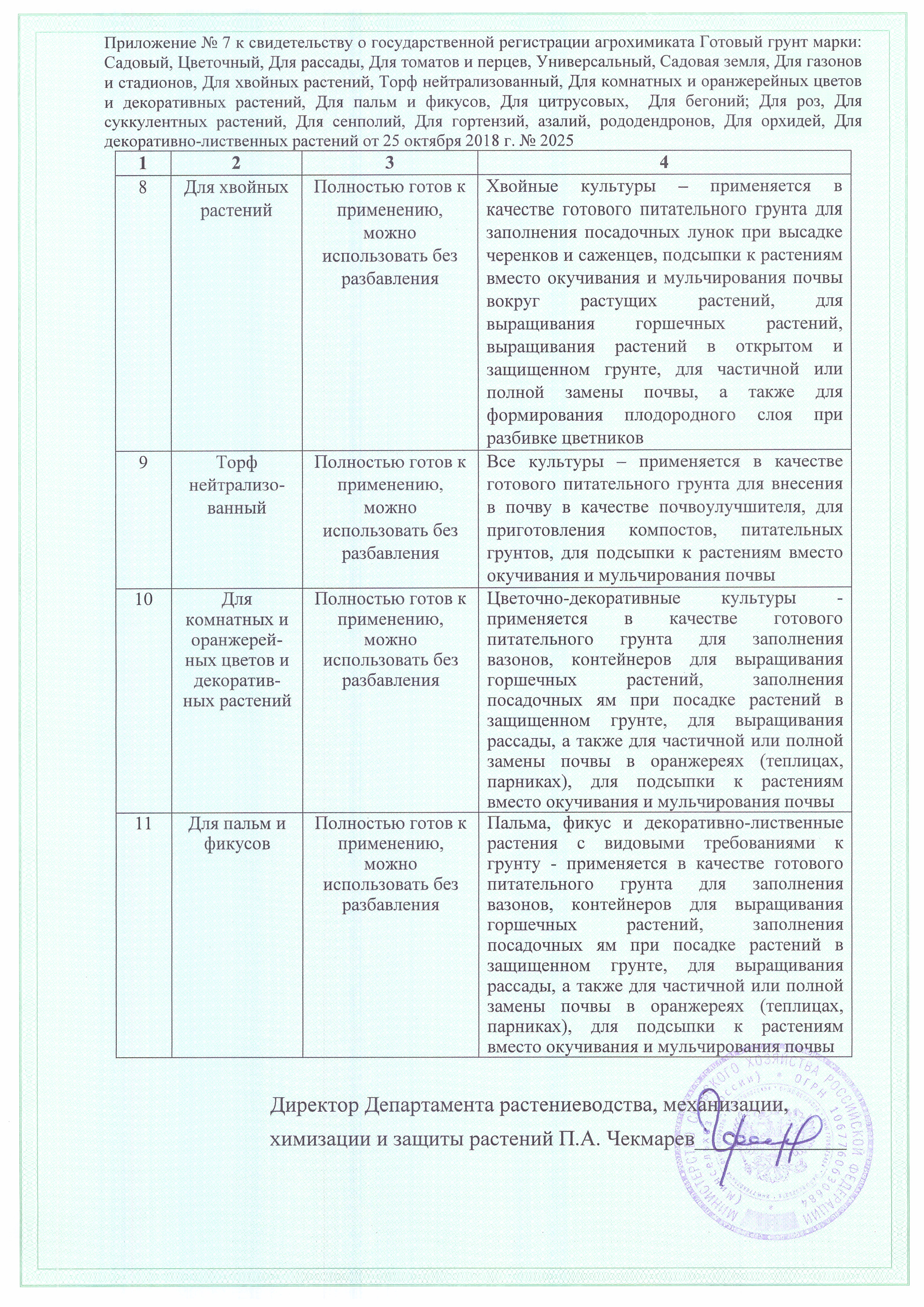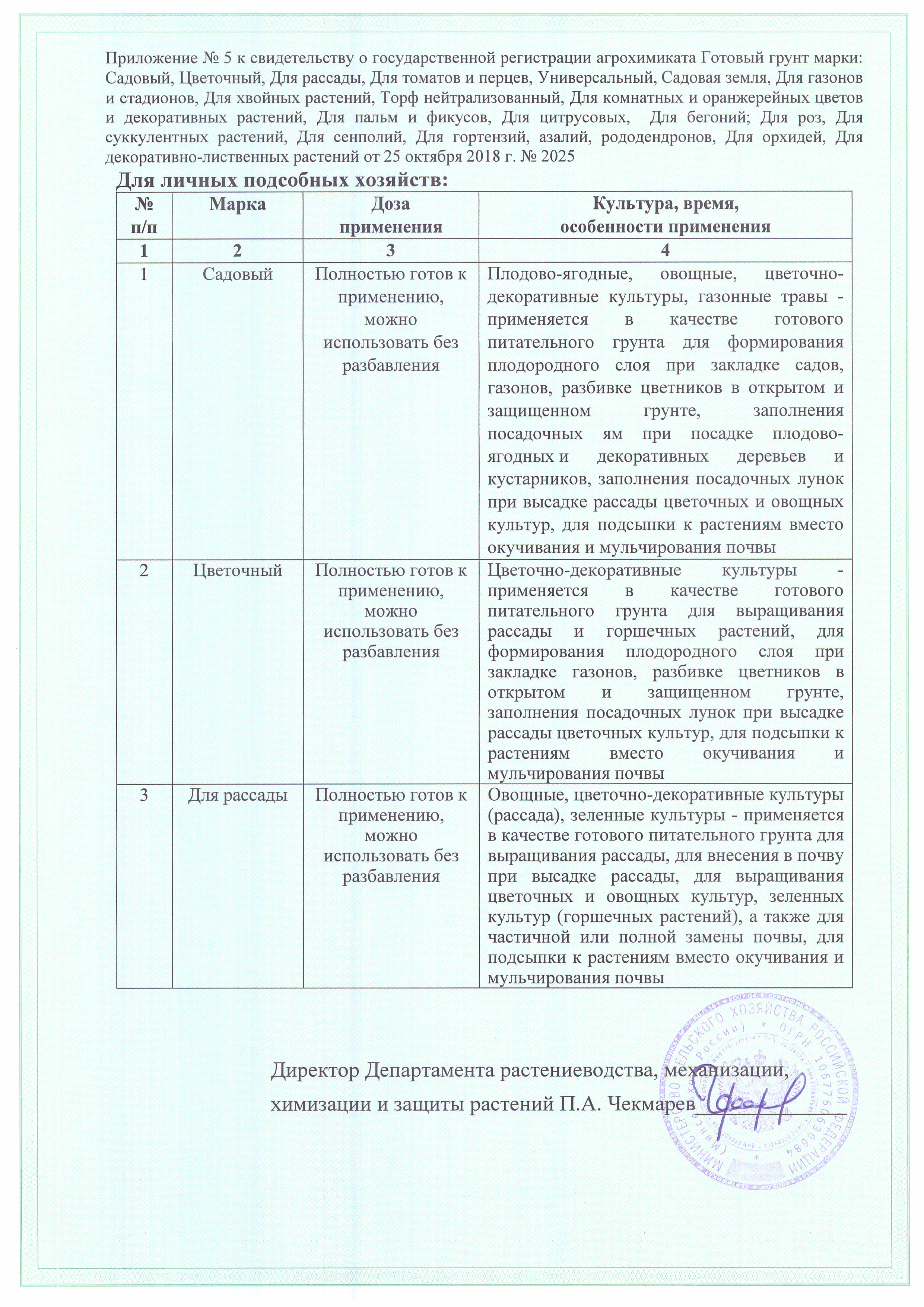 Государственная регистрация - №513-14-2025-1 от 25.10.18 до 24.10.28 выдана МСХ РФ, Сертификация-информационное письмо №02600 от 18.03.23 выдана ОС продукции ООО "Рус-Тест"
