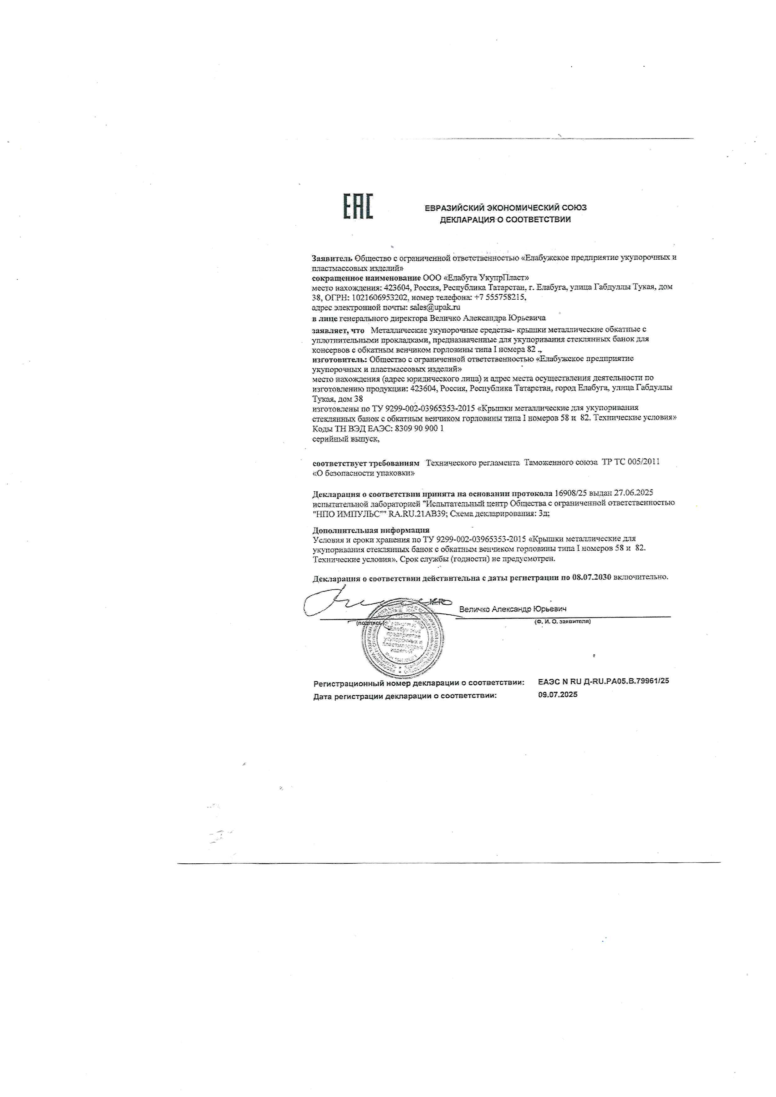 Крышка упакована в столбики по 25 шт. в термоусадочной плёнке с этикеткой.
