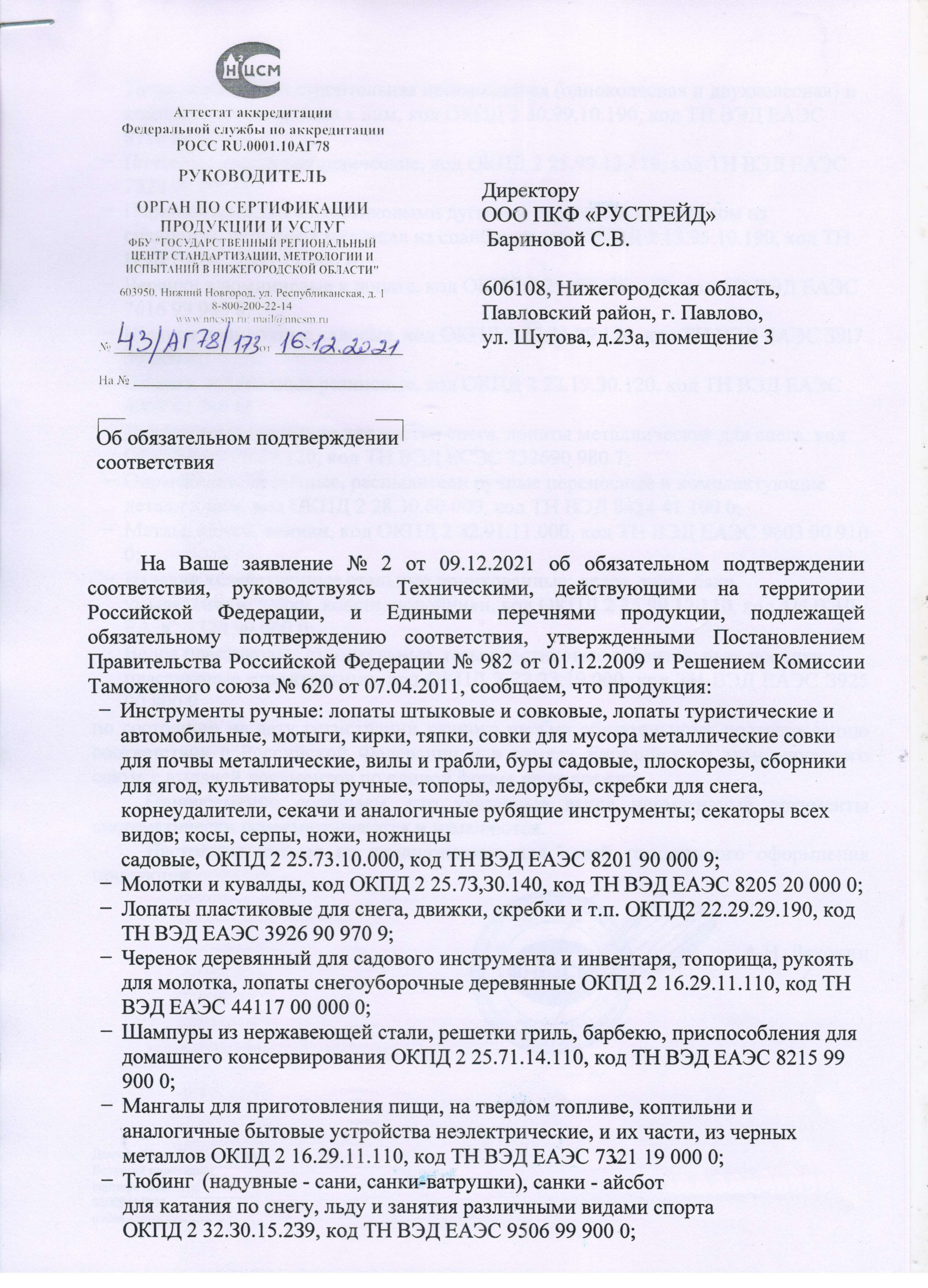 ОБЯЗАТЕЛЬНОЙ СЕРТИФИКАЦИИ НЕ ПОДЛЕЖИТ.