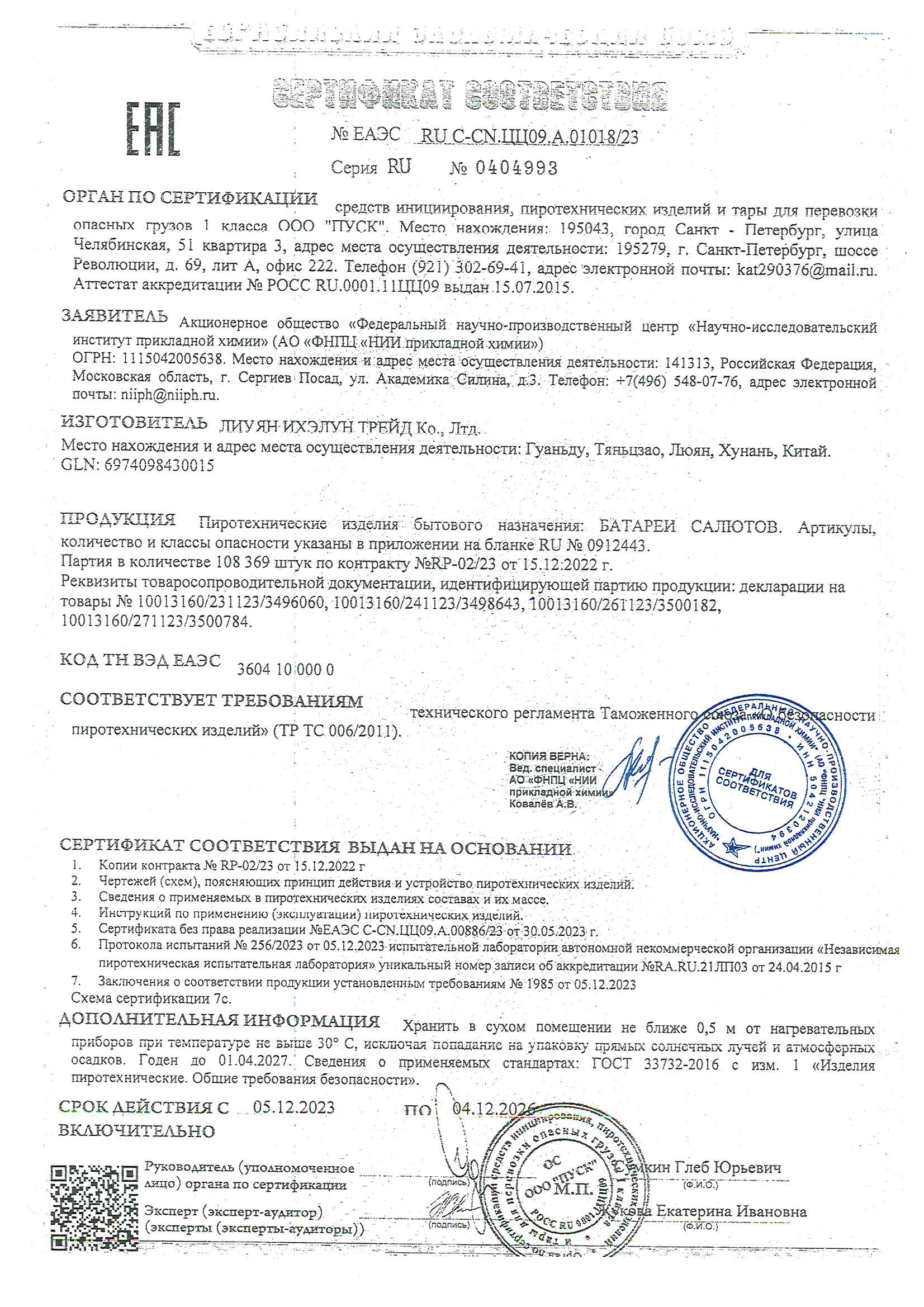 1. Разноцветные кометы разрываются сферами из: золотых форсов и серебряных мерцающих огней, 2. золотых форсов и красных мерцающих огней.