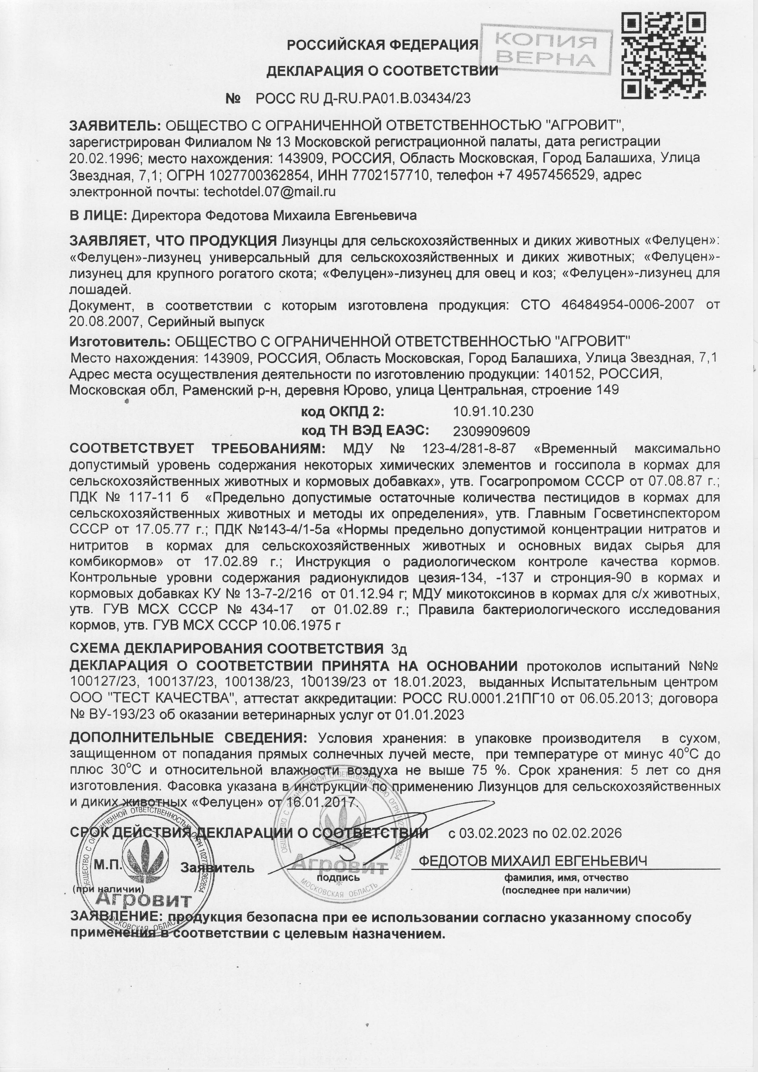 Данный продукт изготовлен из натуральных природных компонентов. Не содержит антибиотики, гормональные препараты и ГМО. Побочных явлений и осложнений при применении продукта выявлено не было, противопоказаний не установлено. После применения продукта мясо и молоко животных используется без ограничений.