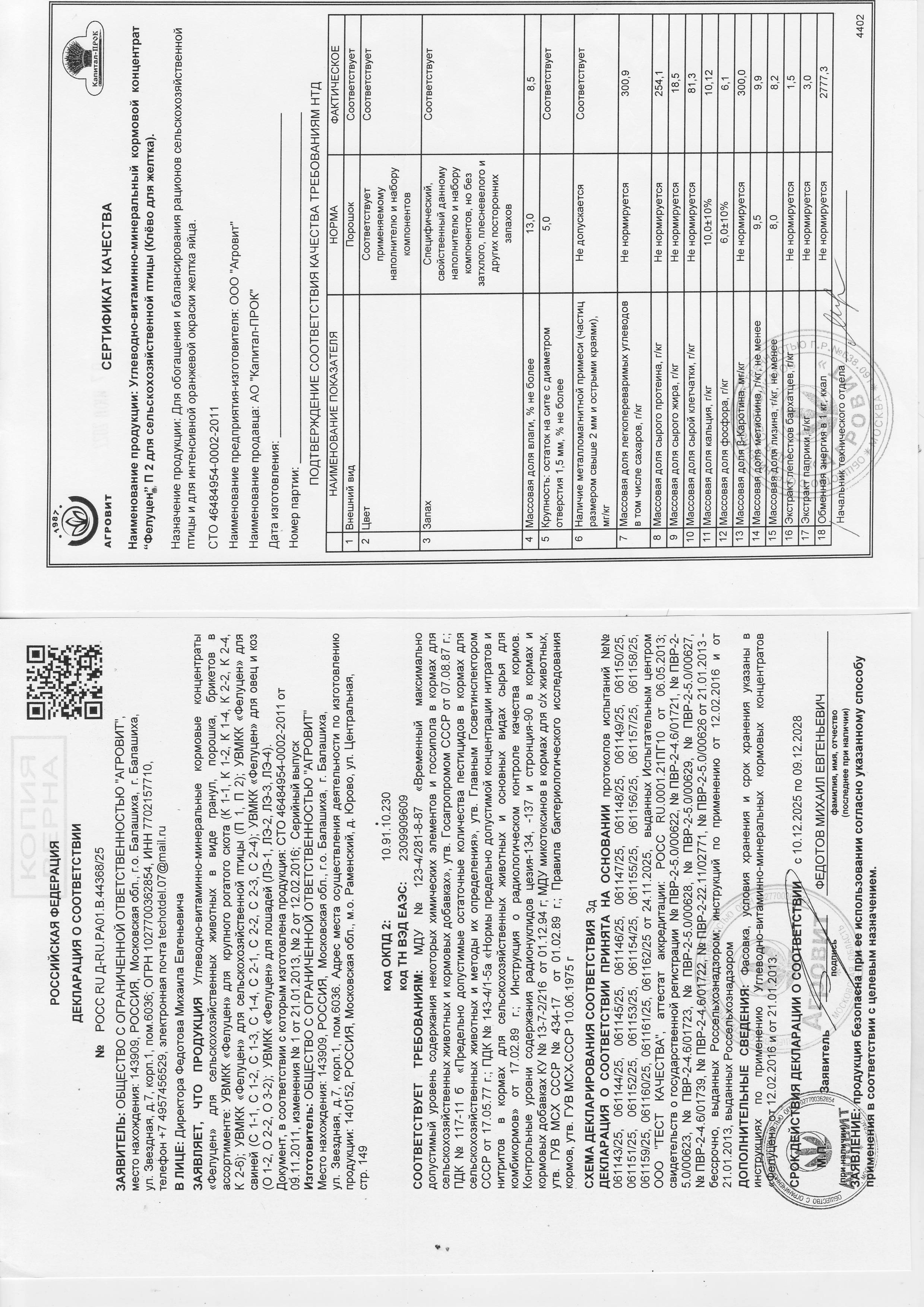 Данный продукт изготовлен из натуральных природных компонентов. Не содержит антибиотики, пальмовое масло, гормональные препараты и ГМО. Побочных явлений и осложнений при применении продукта выявлено не было, противопоказаний не установлено. После применения продукта мясо и яйцо птицы используется без ограничений.