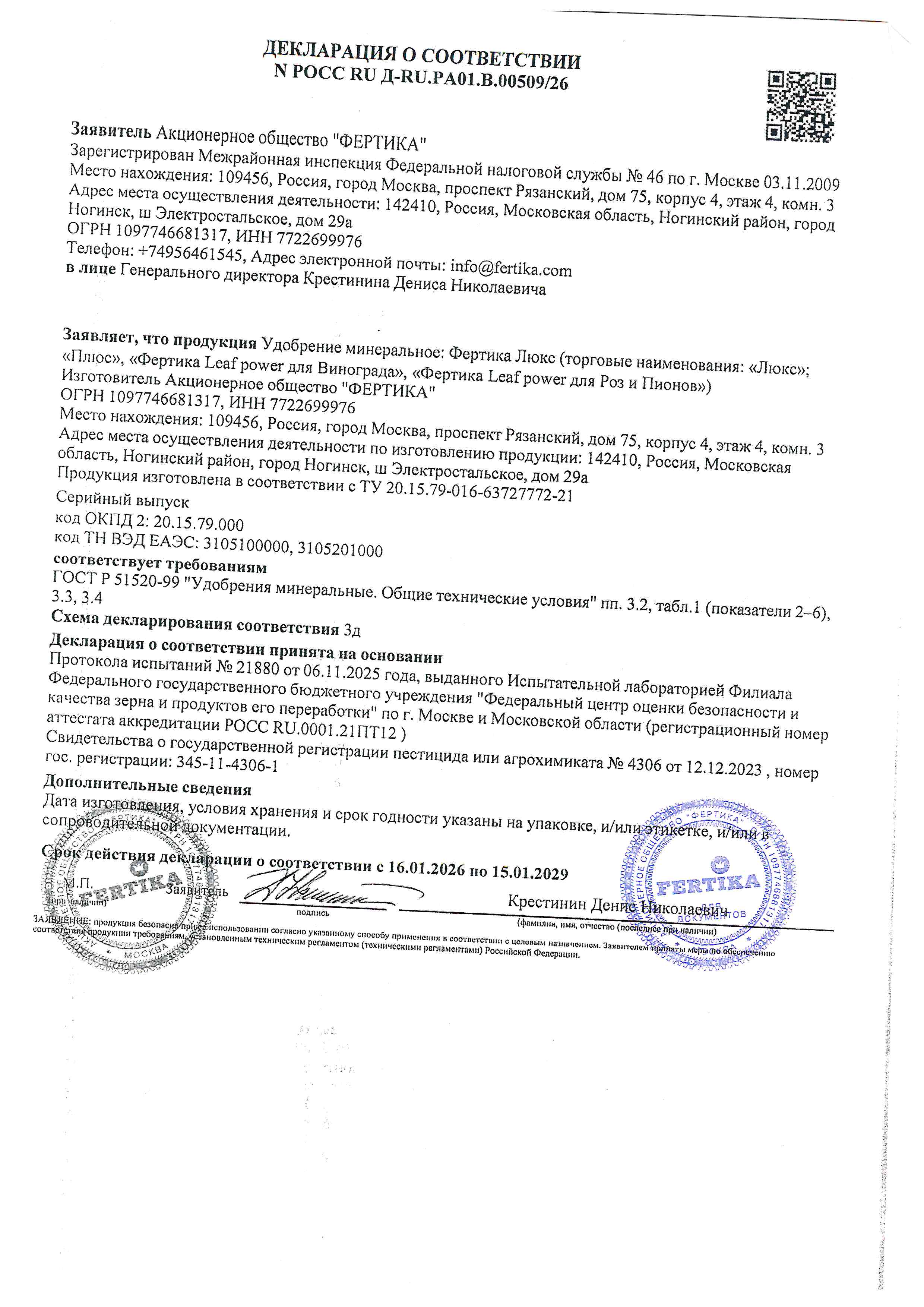 Состав: N P2O5 K2O Cu Fe Mn Mo Zn