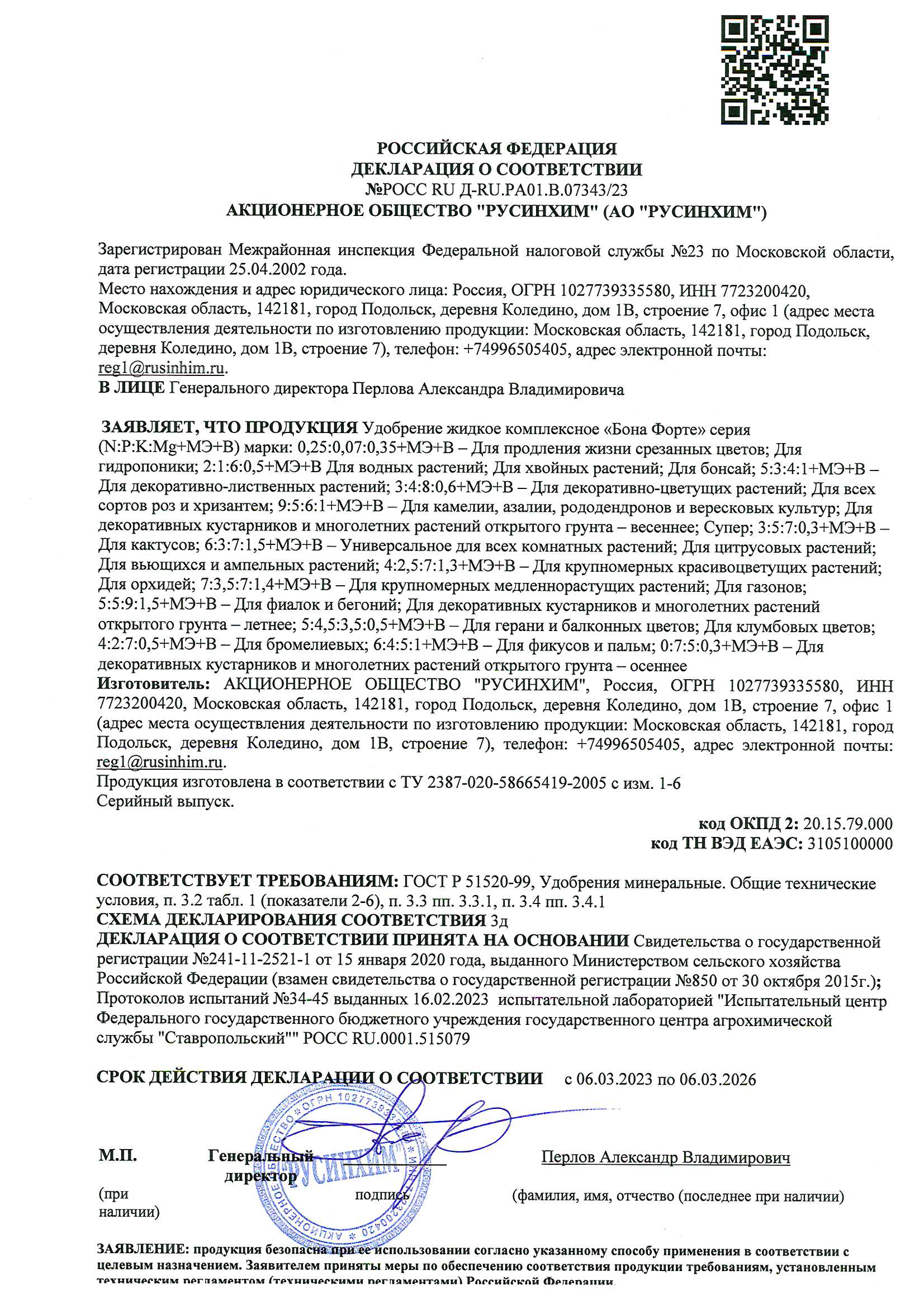 Дополнительная информация ! После размораживания и окончания срока годности удобрение не теряет агрономической ценности.