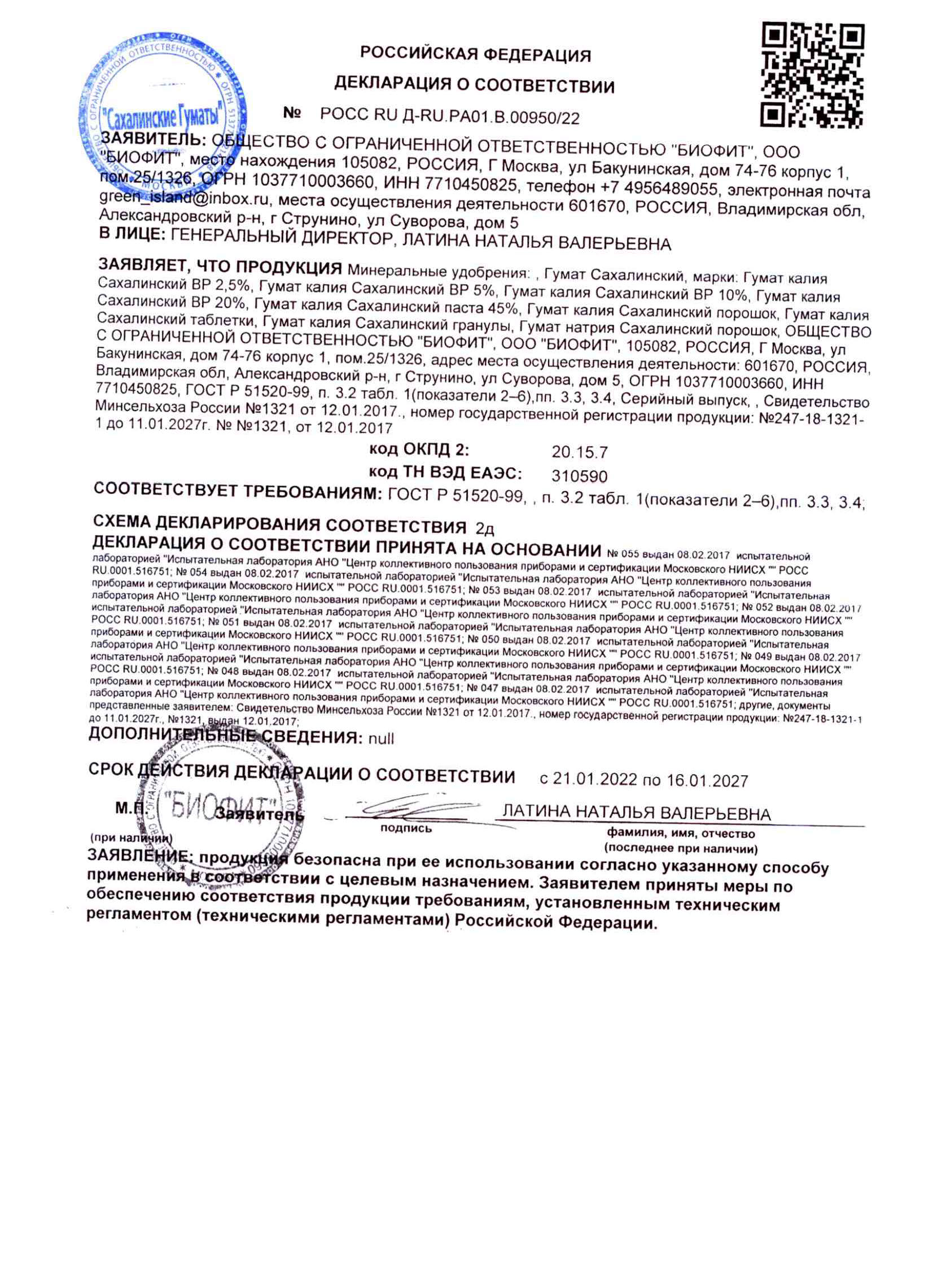 Эффективное природное удобрение на основе экологически чистого сырья добываемого на острове Сахалин.