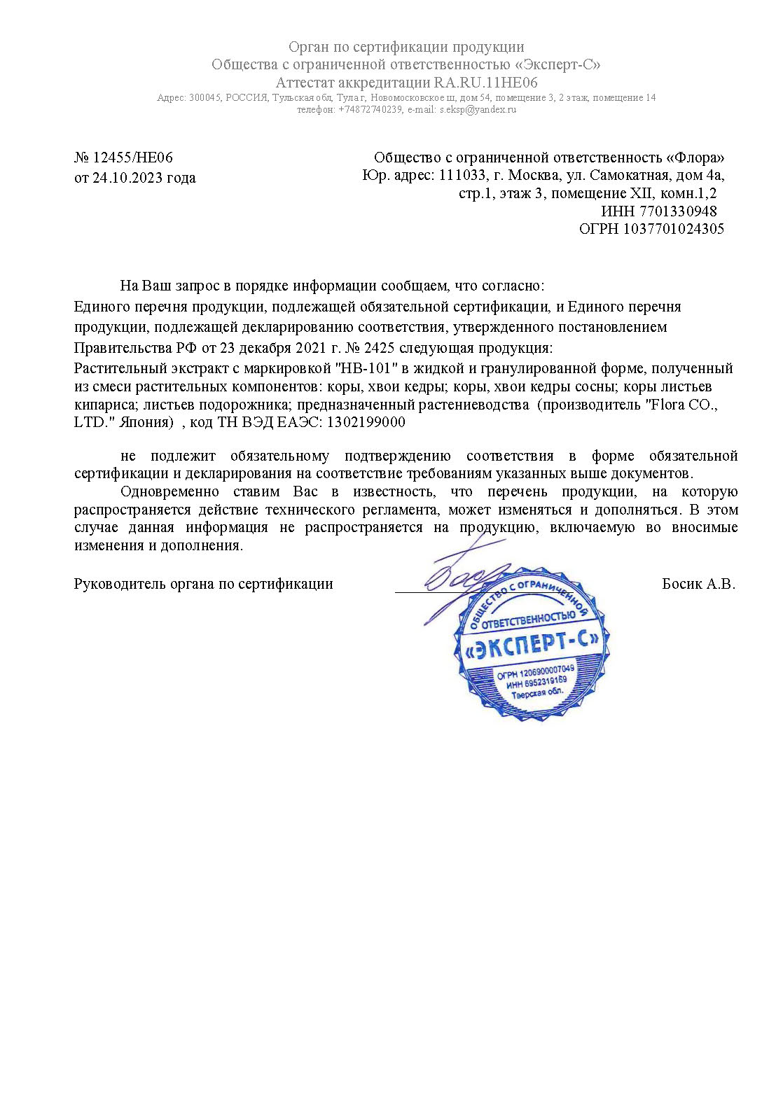 НВ-101 – концентрированный несинтезированный питательный состав, выработанный из экстрактов растений, известных своим долголетием и большой жизненной силой.