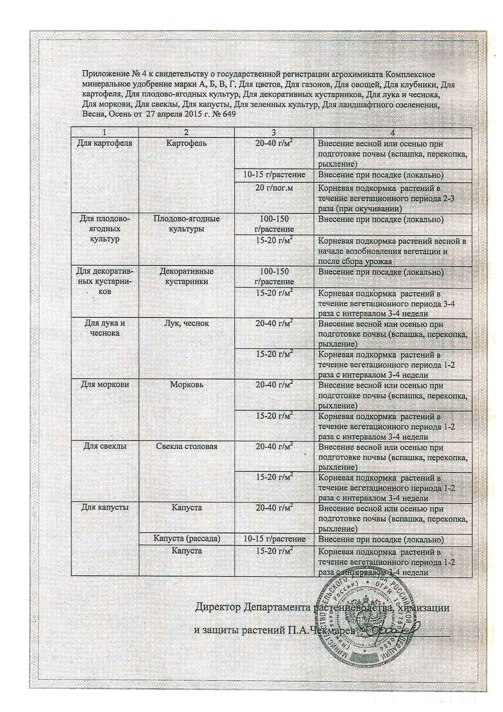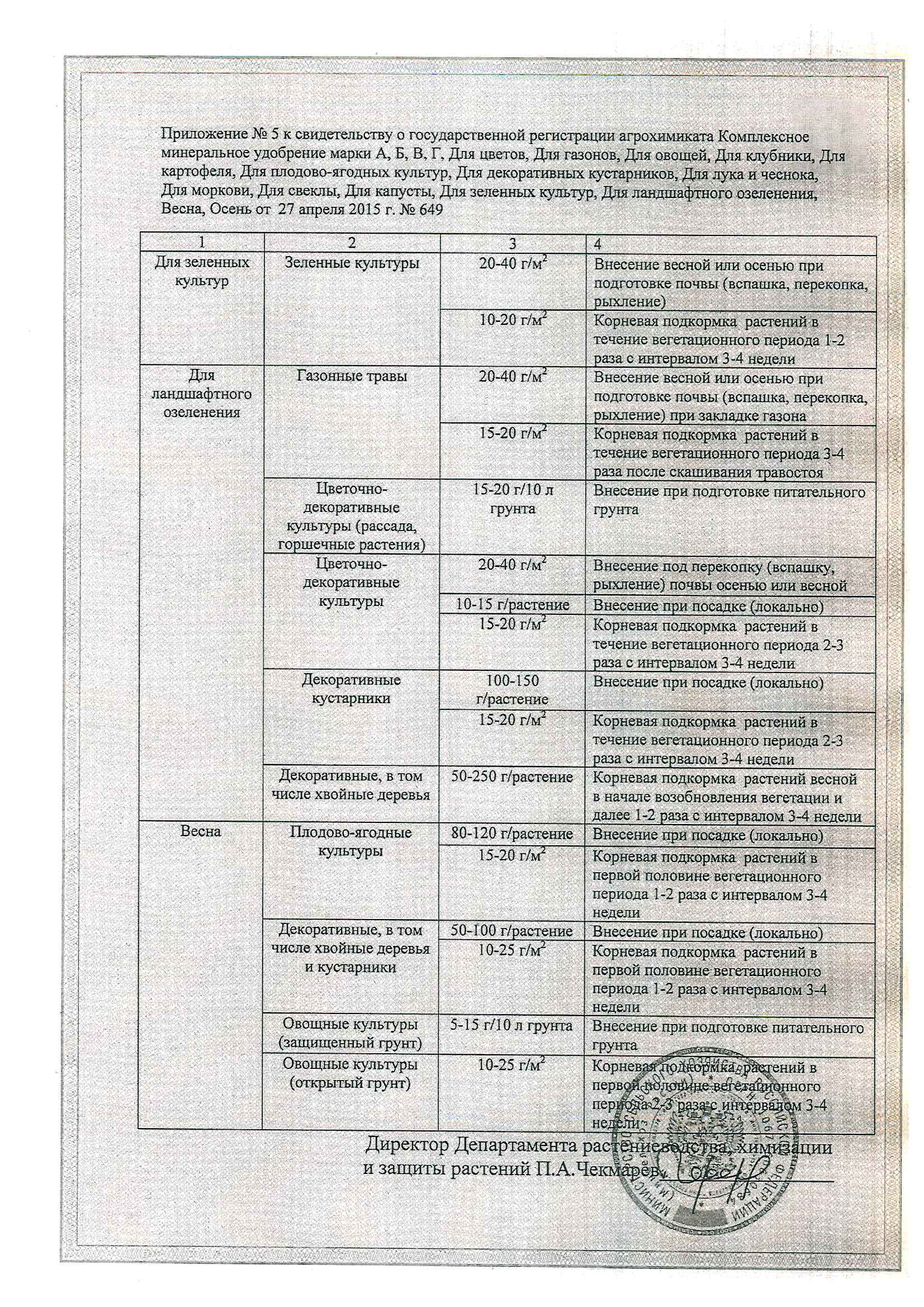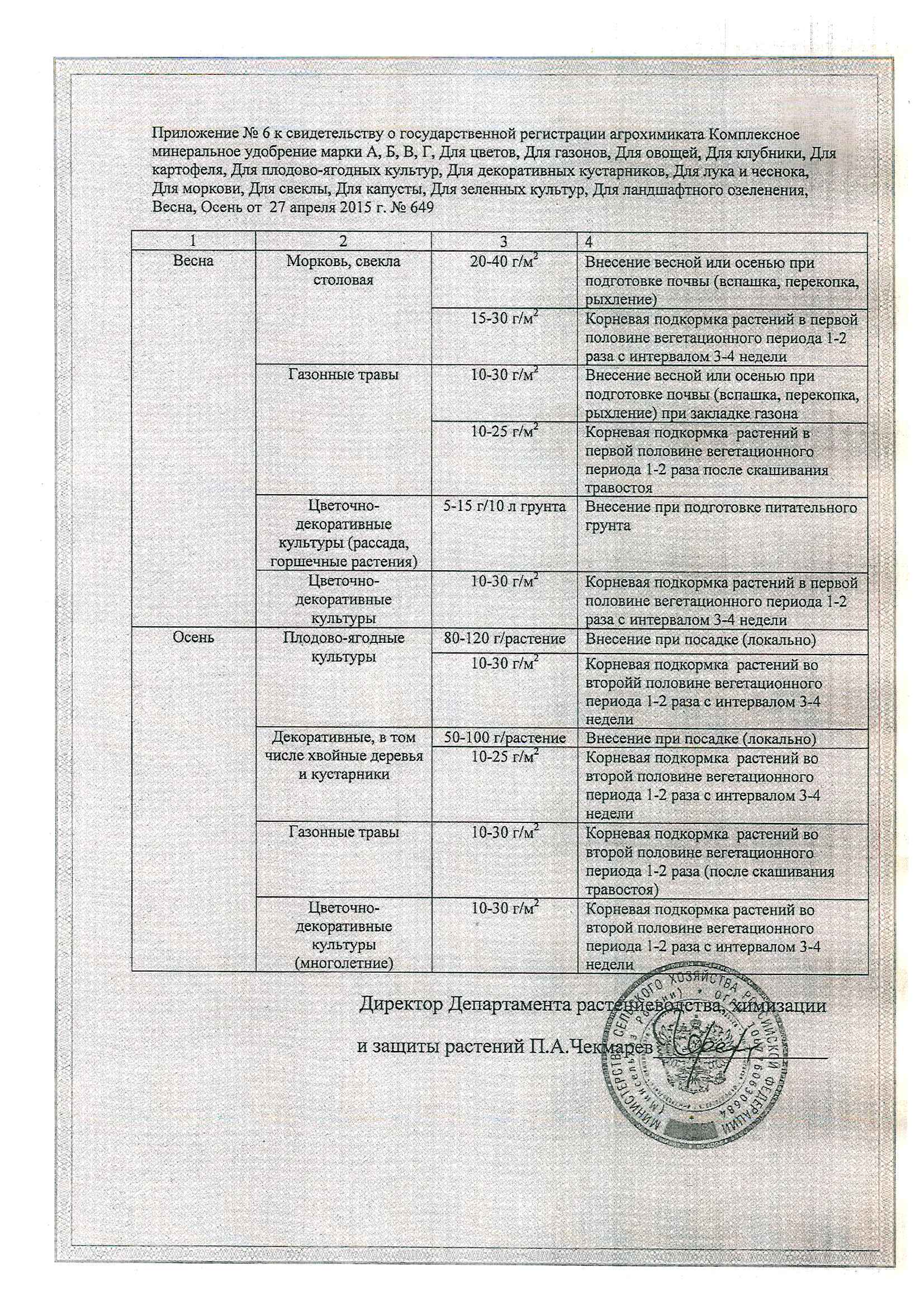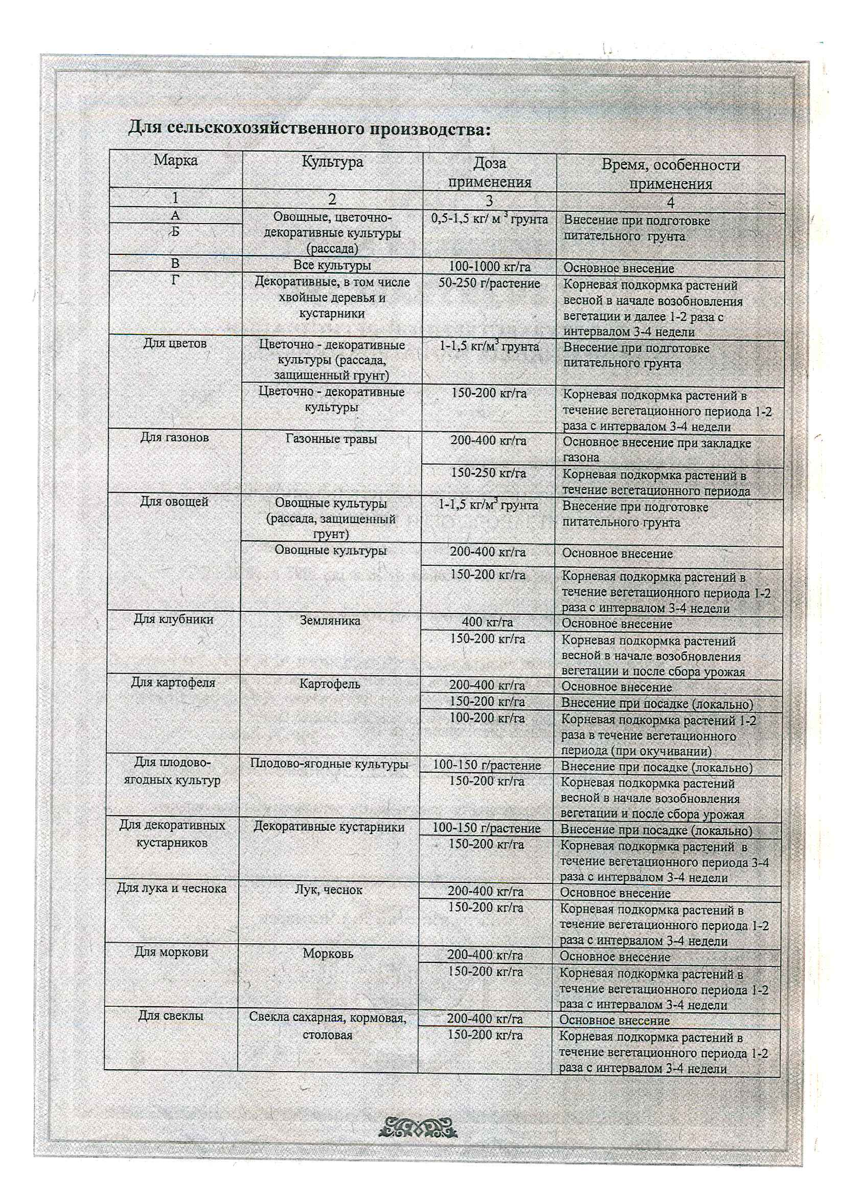 15-20 г/1 м2 с последующим рыхлением и поливом - при подкормках