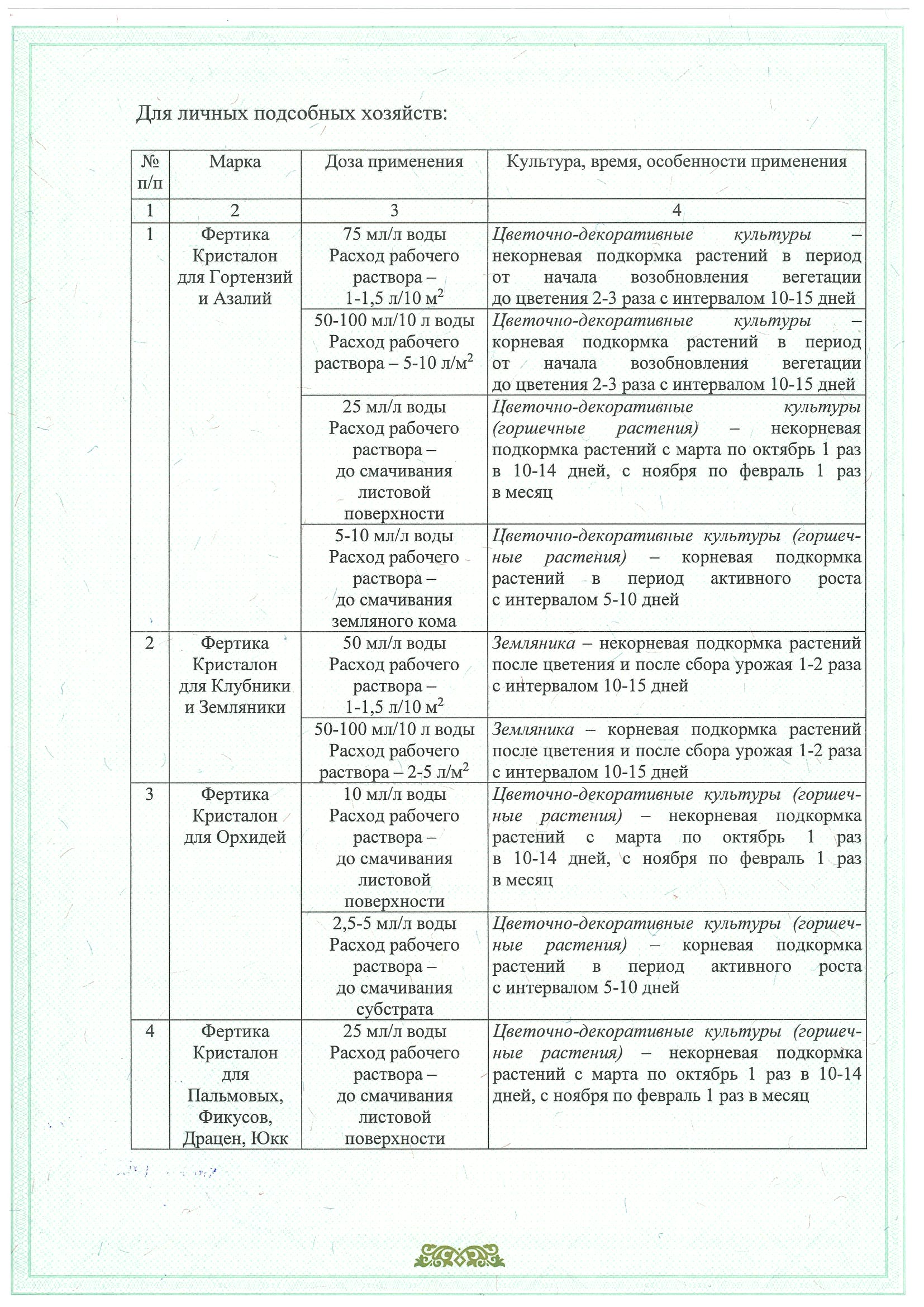 Содержимое 1 ампулы (10 мл) развести в 1 литре воды, проводить корневые и некорневые подкормки в период активного роста с интервалом 10-14 дней.