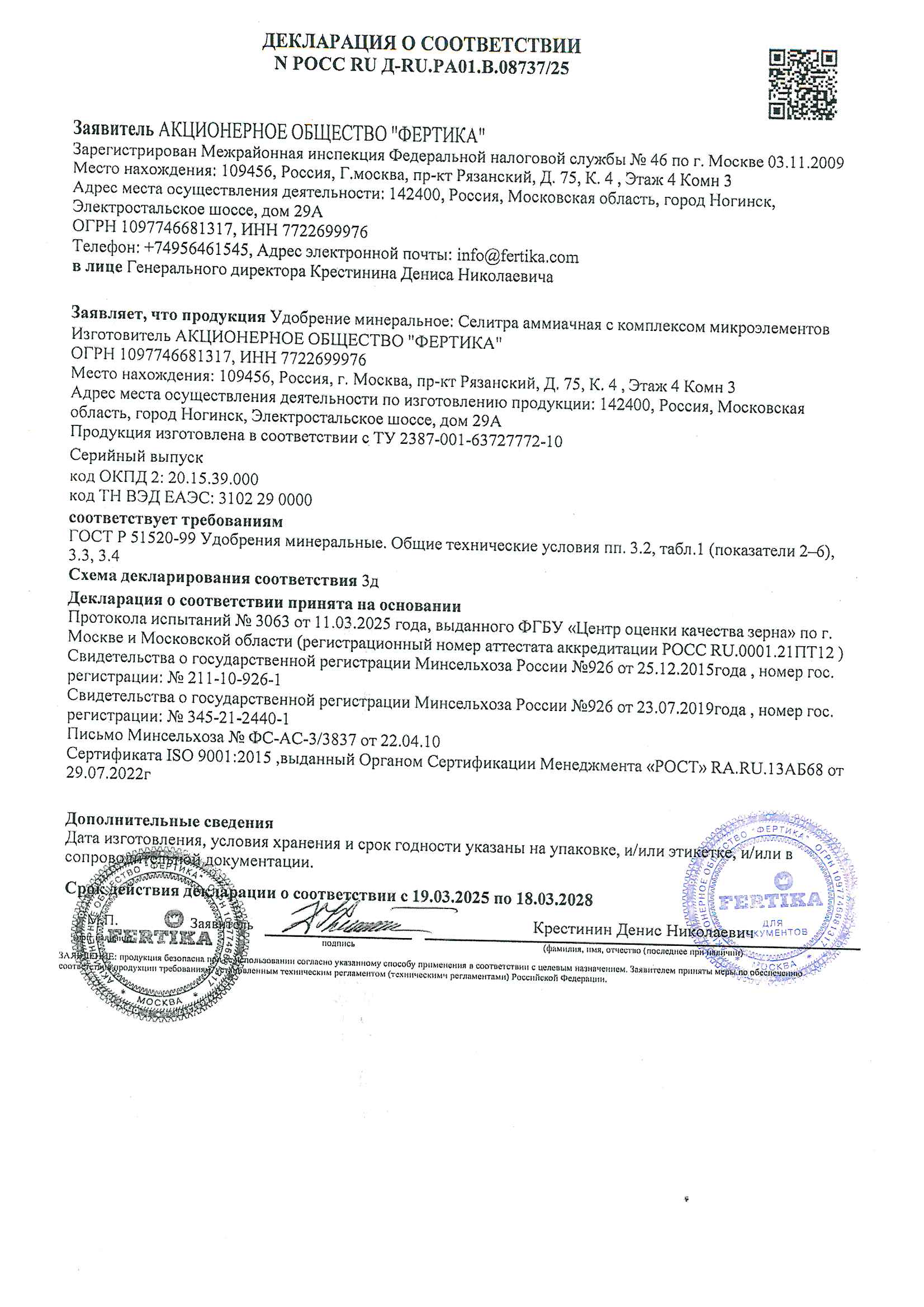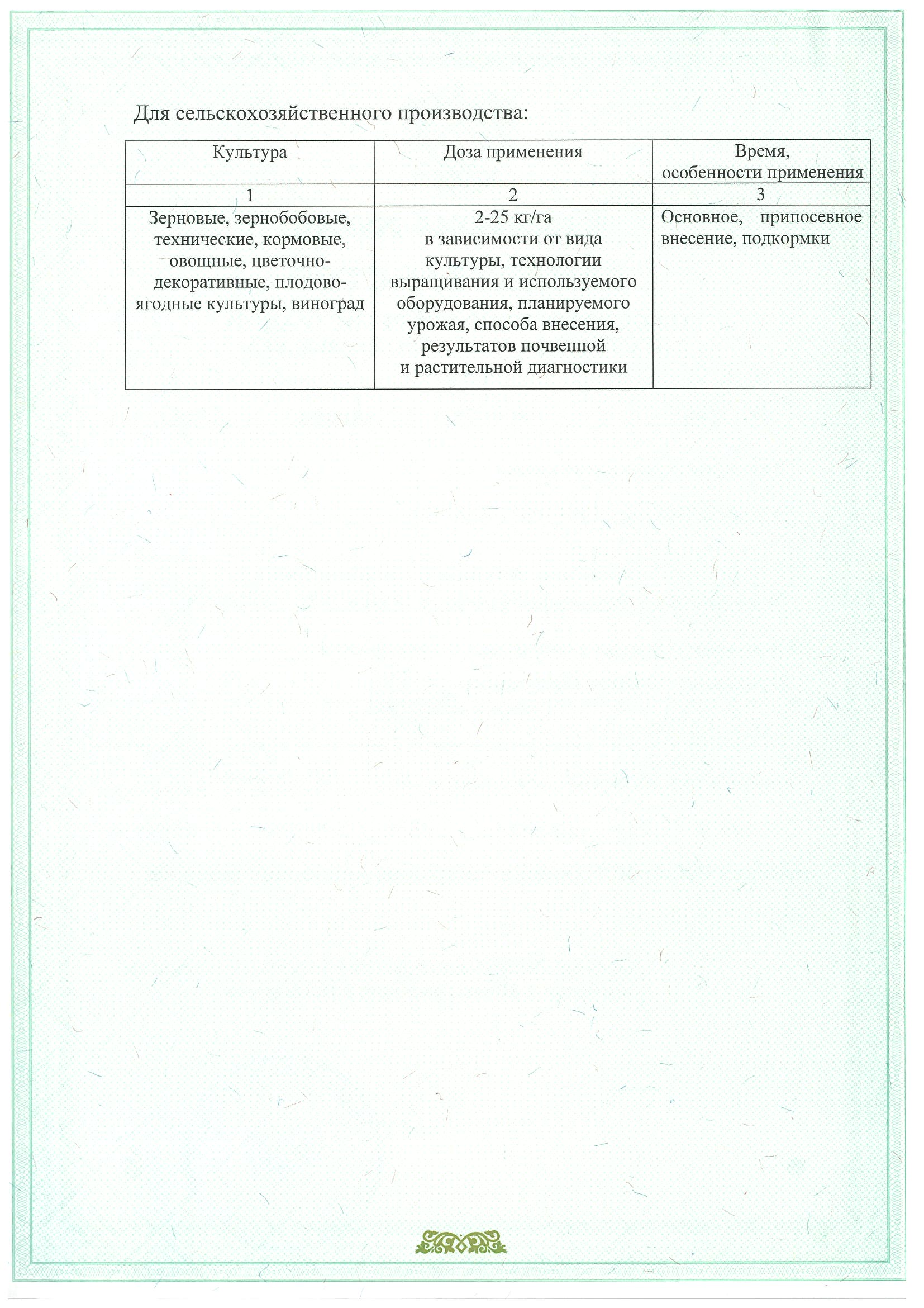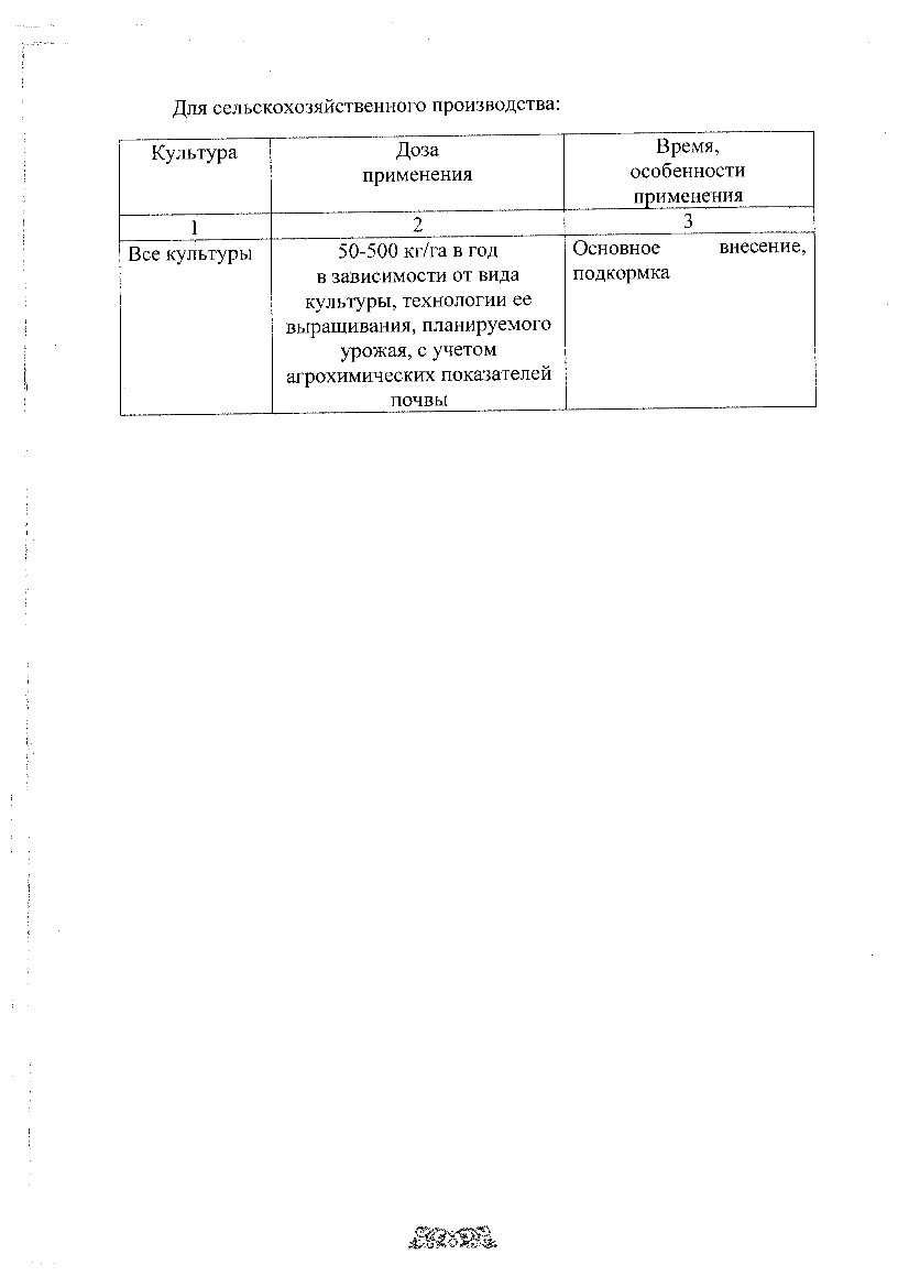 * хорошо растворяется в воде, может быть использовано в качестве основного удобрения и в виде подкормок любых плодовых, ягодных и овощных культур;