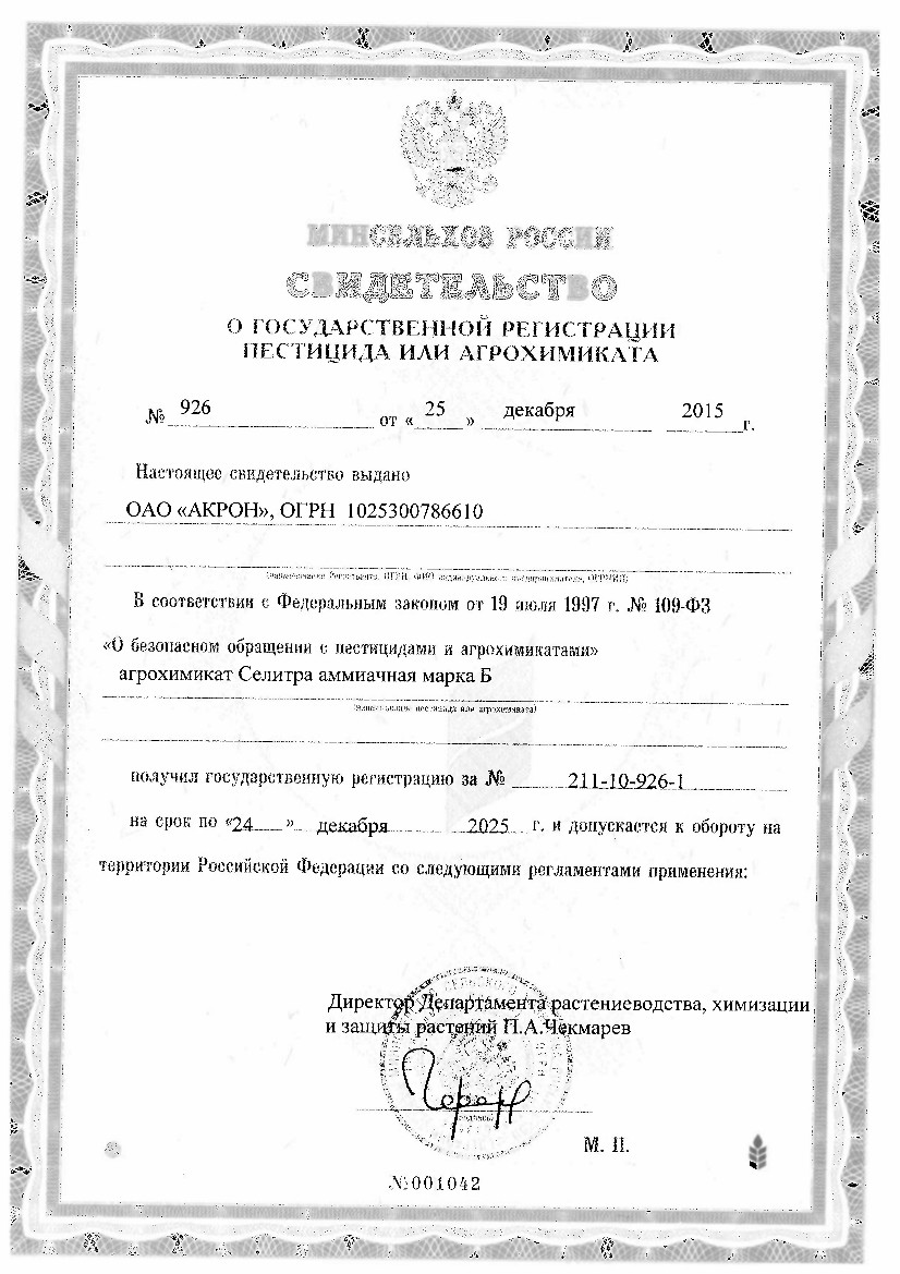 Аммиачная селитра (N–33%)