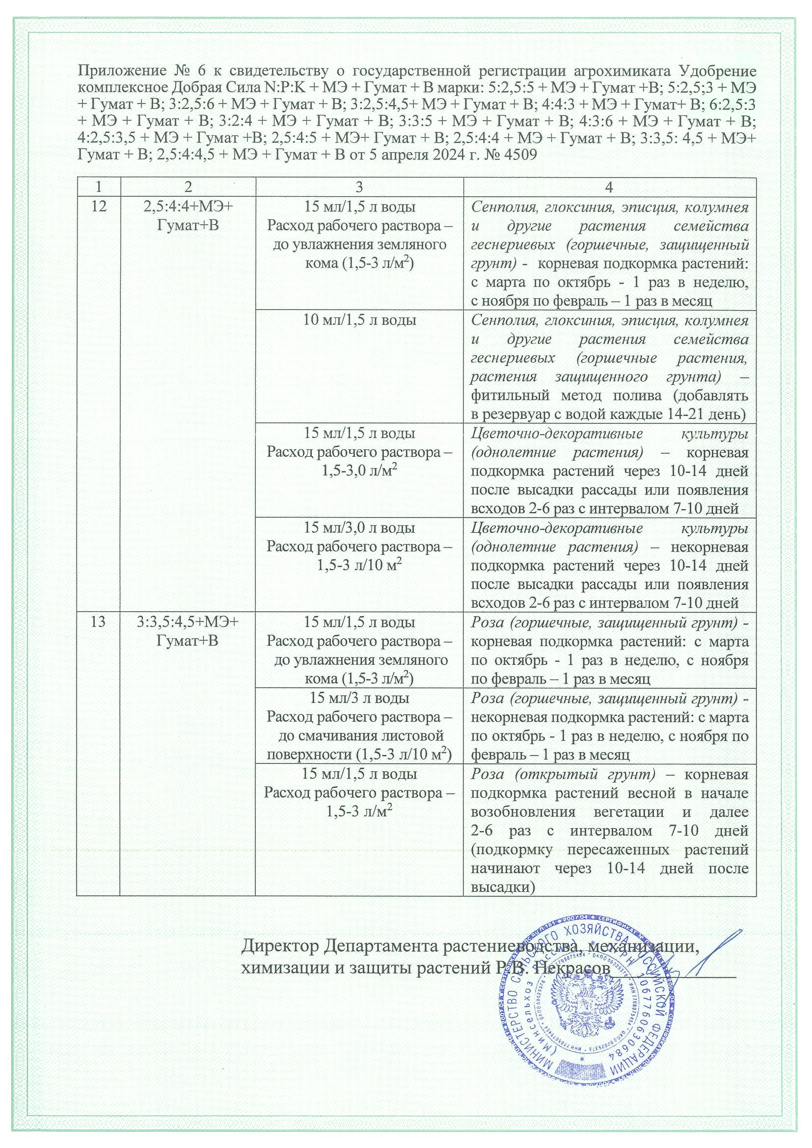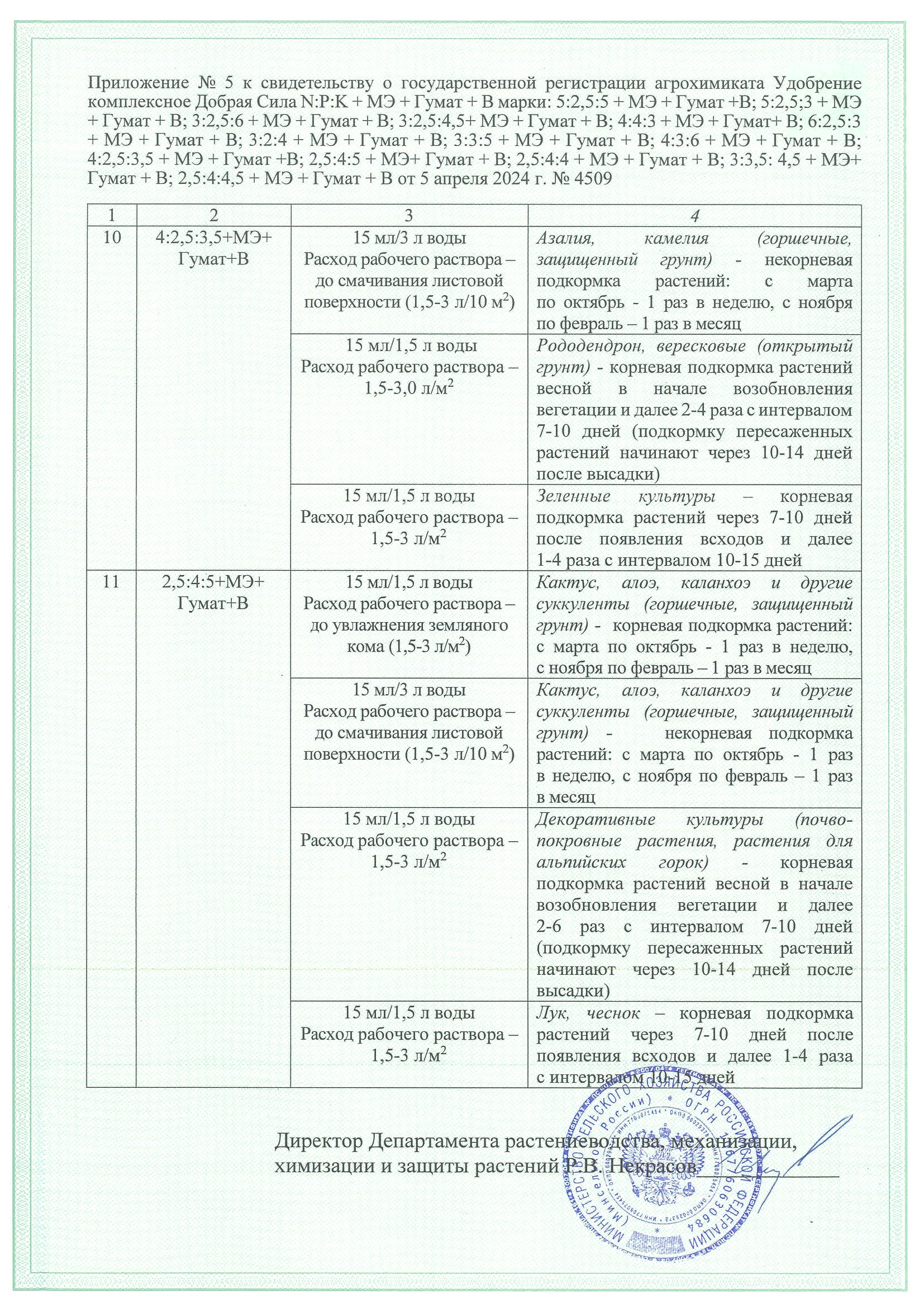 - NPK (3:3,5:4,5) + МЭ + Гумат + В.