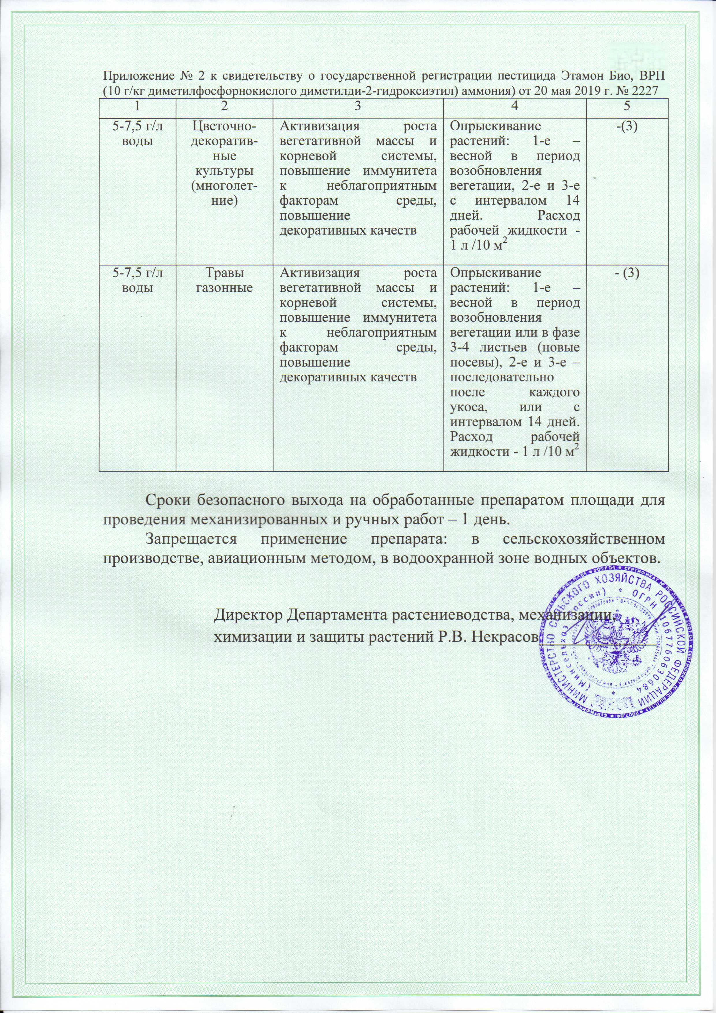 ЦВЕТОЧНЫЕ МНОГОЛЕТНИЕ КУЛЬТУРЫ: норма расхода 1 мл/л, опрыскивание в период возобновления вегетации, повторить 2 раза за сезон с интервалом 12-14 дней.