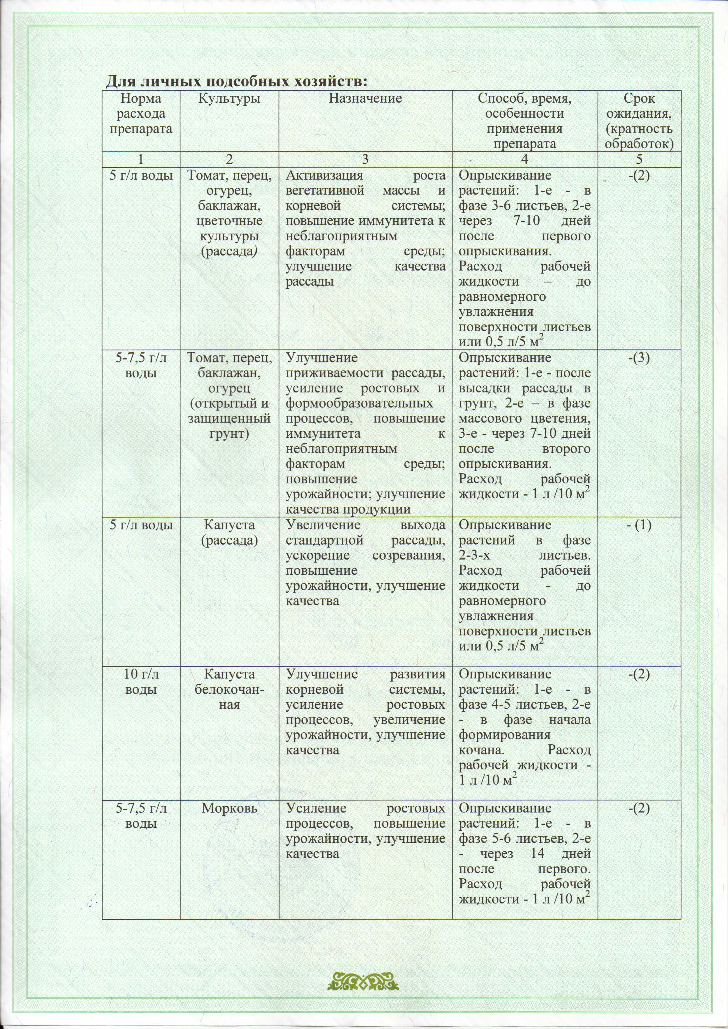 РАССАДА (томаты, перец, огурцы, капуста, баклажаны, цветы однолетние и др.): норма расхода 1 мл/л, опрыскивание в фазе 3-5 листьев, повторить через 7 дней.