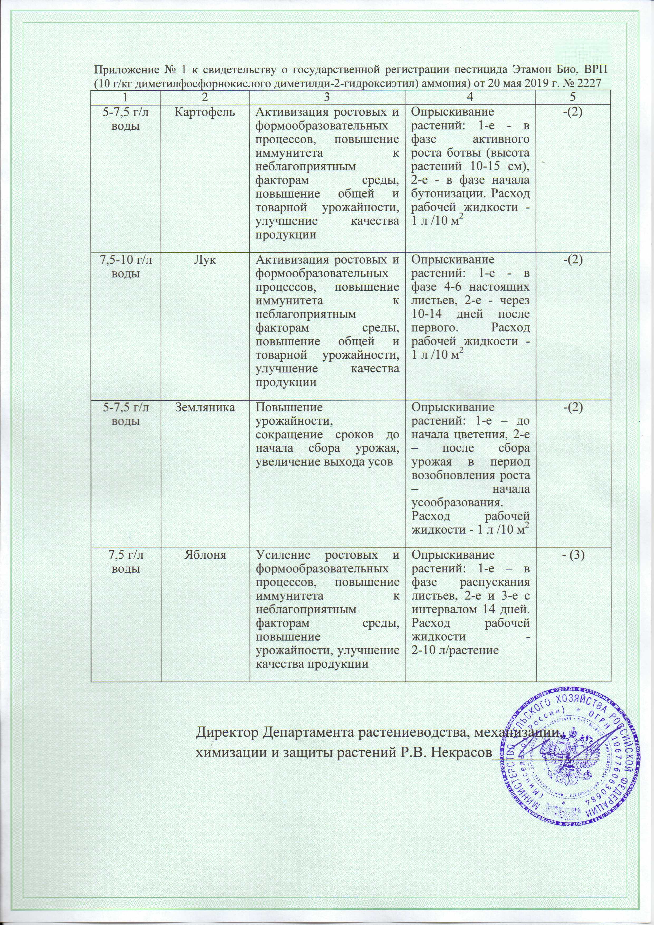 ПРИГОТОВЛЕНИЕ РАБОЧЕГО РАСТВОРА: в емкость налить воду на 2/3 объема, добавить необходимое количество регулятора роста, долить воду до расчетного объема и перемешать 2-3 минуты. Рабочий раствор необходимо израсходовать в день приготовления. РЕГЛАМЕНТ ПРИМЕНЕНИЯ: