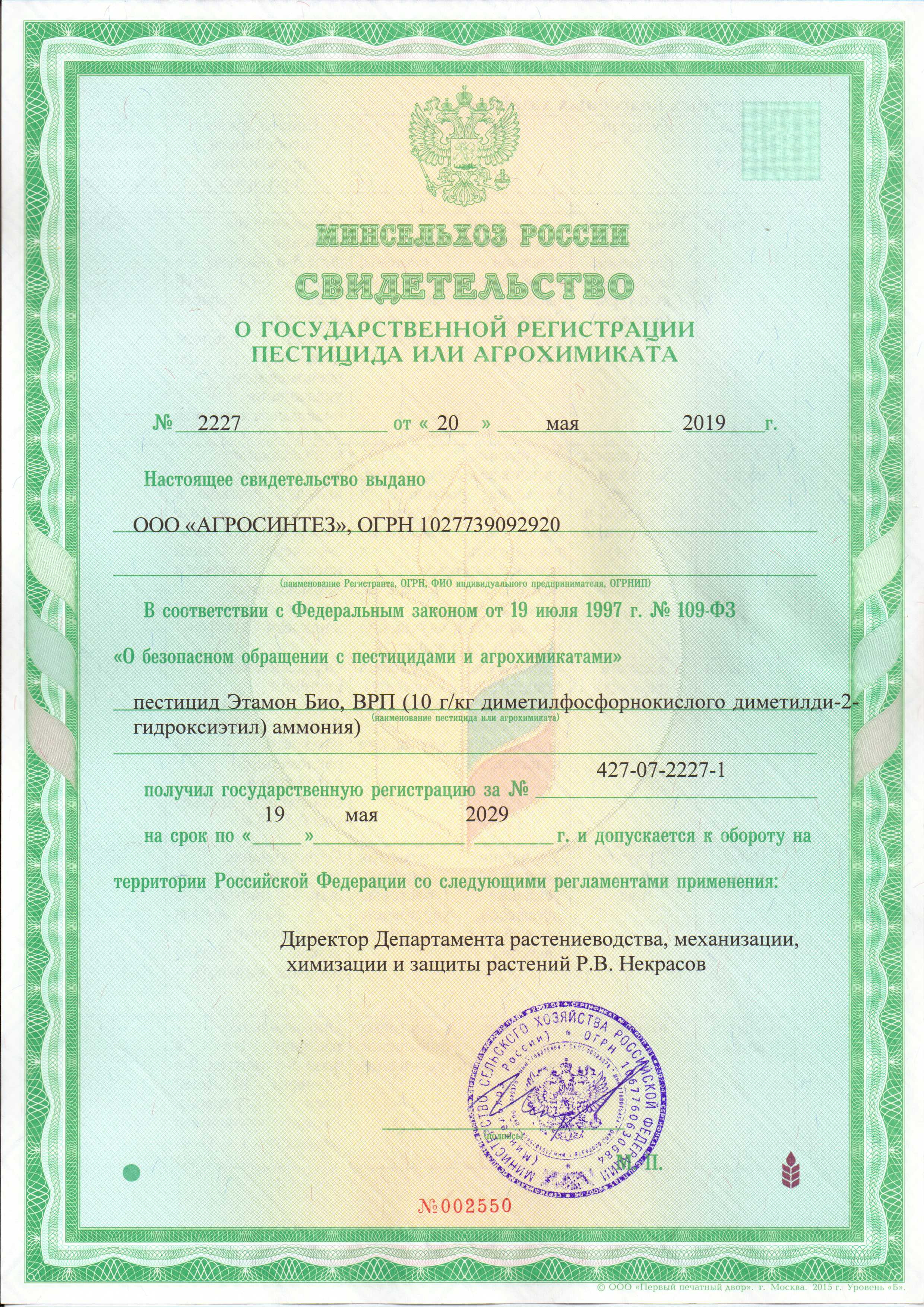 ЖИВАЯ ВОДА®, ВРП (ДИМЕТИЛФОСФОРНОКИСЛЫЙ ДИМЕТИЛДИ-(2-ГИДРОКСИЭТИЛ) АММОНИЙ), 10 Г/КГ). СТИМУЛЯТОР ФОРМИРОВАНИЯ МОЩНОЙ КОРНЕВОЙ СИСТЕМЫ РАССАДЫ, ВЗРОСЛЫХ РАСТЕНИЙ, КУСТАРНИКОВ И ДЕРЕВЬЕВ, РОСТА КЛУБНЕЙ И КОРНЕПЛОДОВ. ДЛЯ ЛПХ.