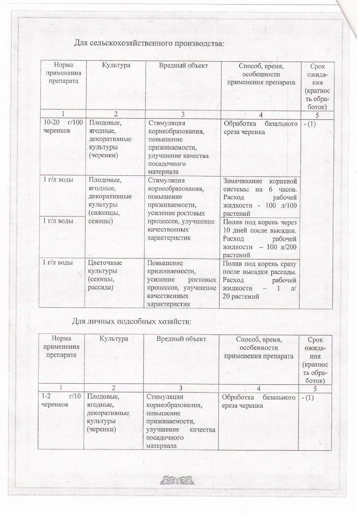 Препарат относится к регуляторам роста растений ауксинового типа. Стимулирует образование боковых корней, ускоряет разрастание корневой системы и формирование адвентивных (придаточных) корней на побегах/черенках. Применяется для укоренения и приживаемости рассады и саженцев широкого спектра культурных растений (плодово-ягодные, декоративные, овощные, лиственные и хвойные древесные культуры). Способствует быстрой приживаемости посадочного материала и снижению стресса при посадке и пересадке саженцев, сеянцев, рассады овощных и цветочных культур.