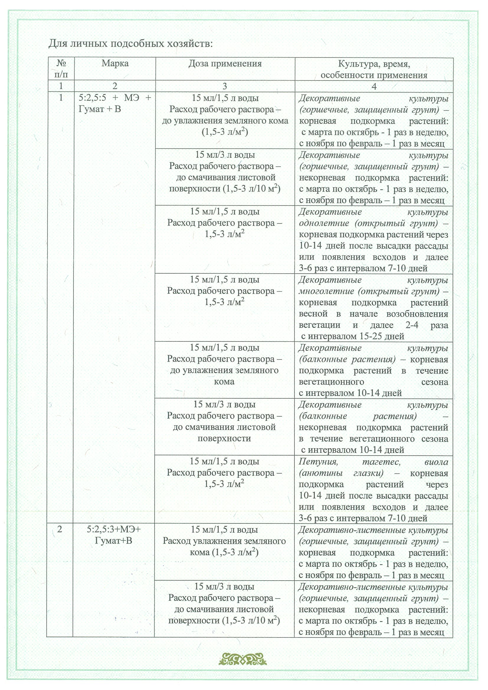! Неиспользованный готовый рабочий раствор можно хранить до следующей подкормки, но не более 3-х дней.