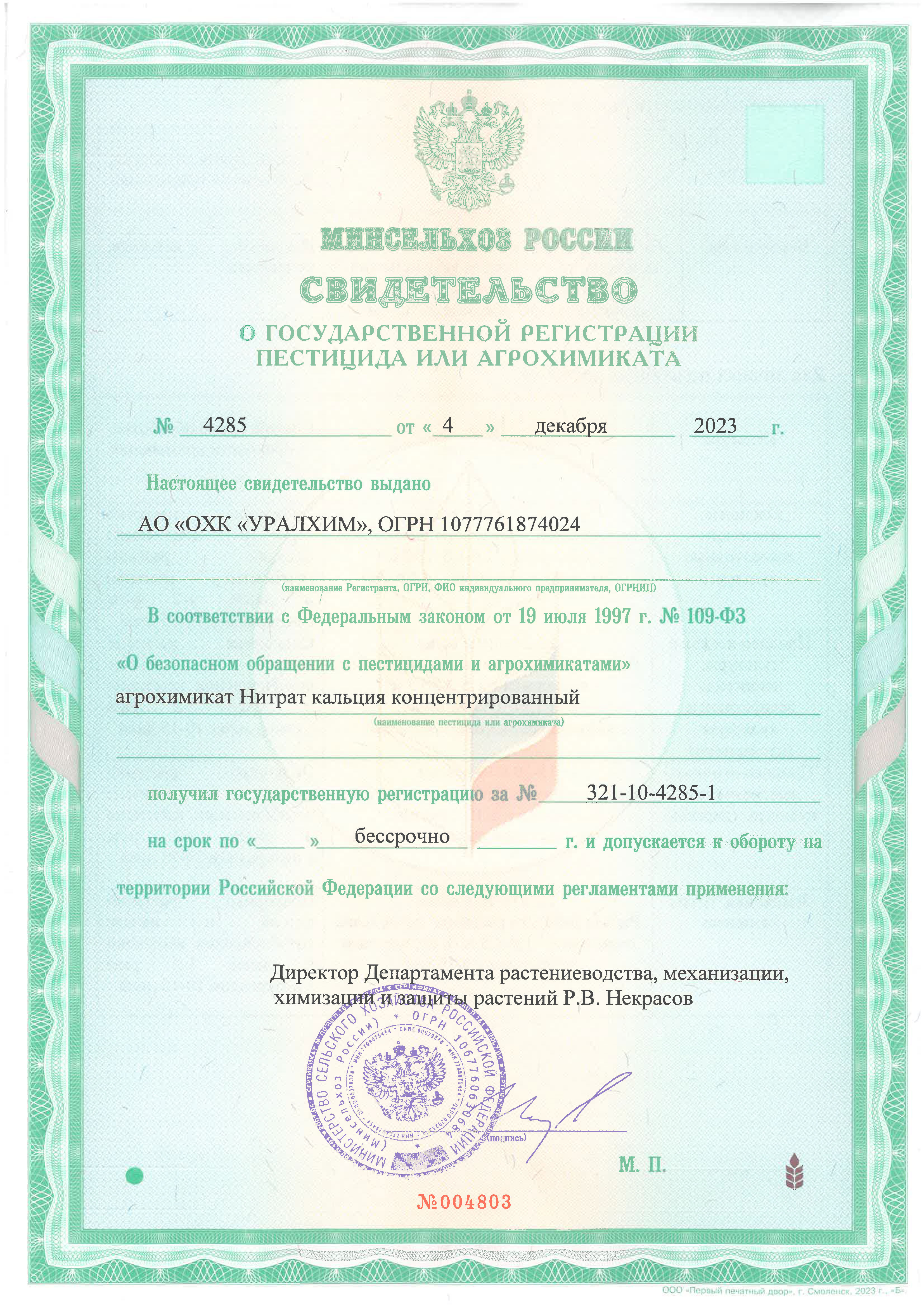Содержит доступный азот и в повышенном количестве растворимый кальций