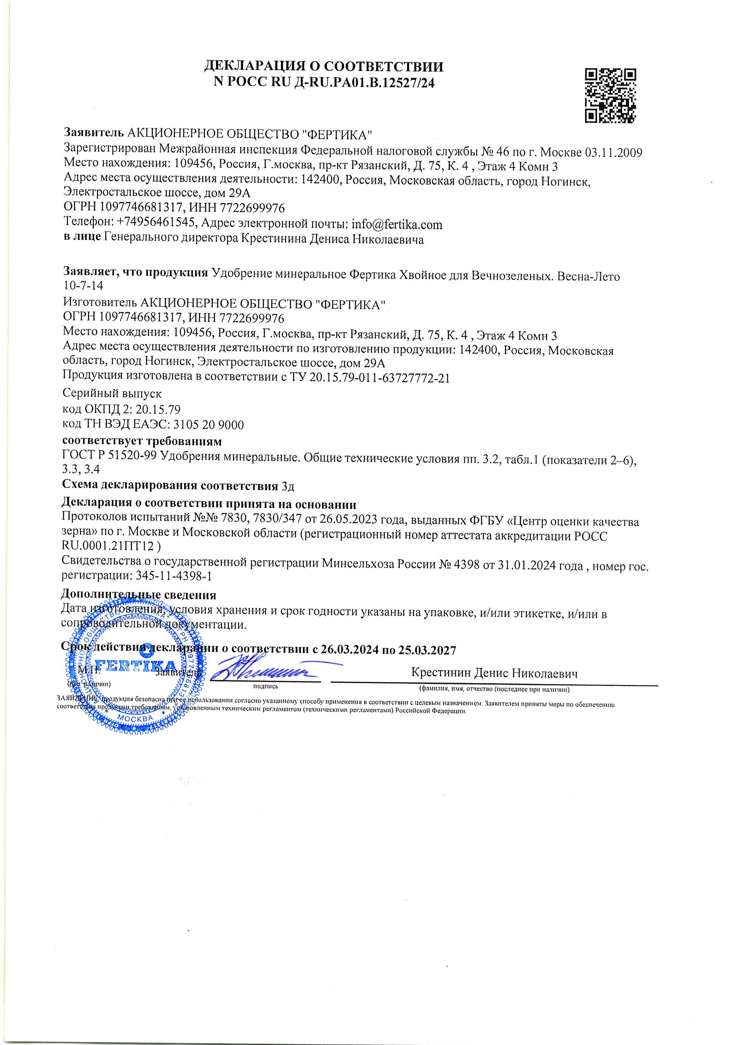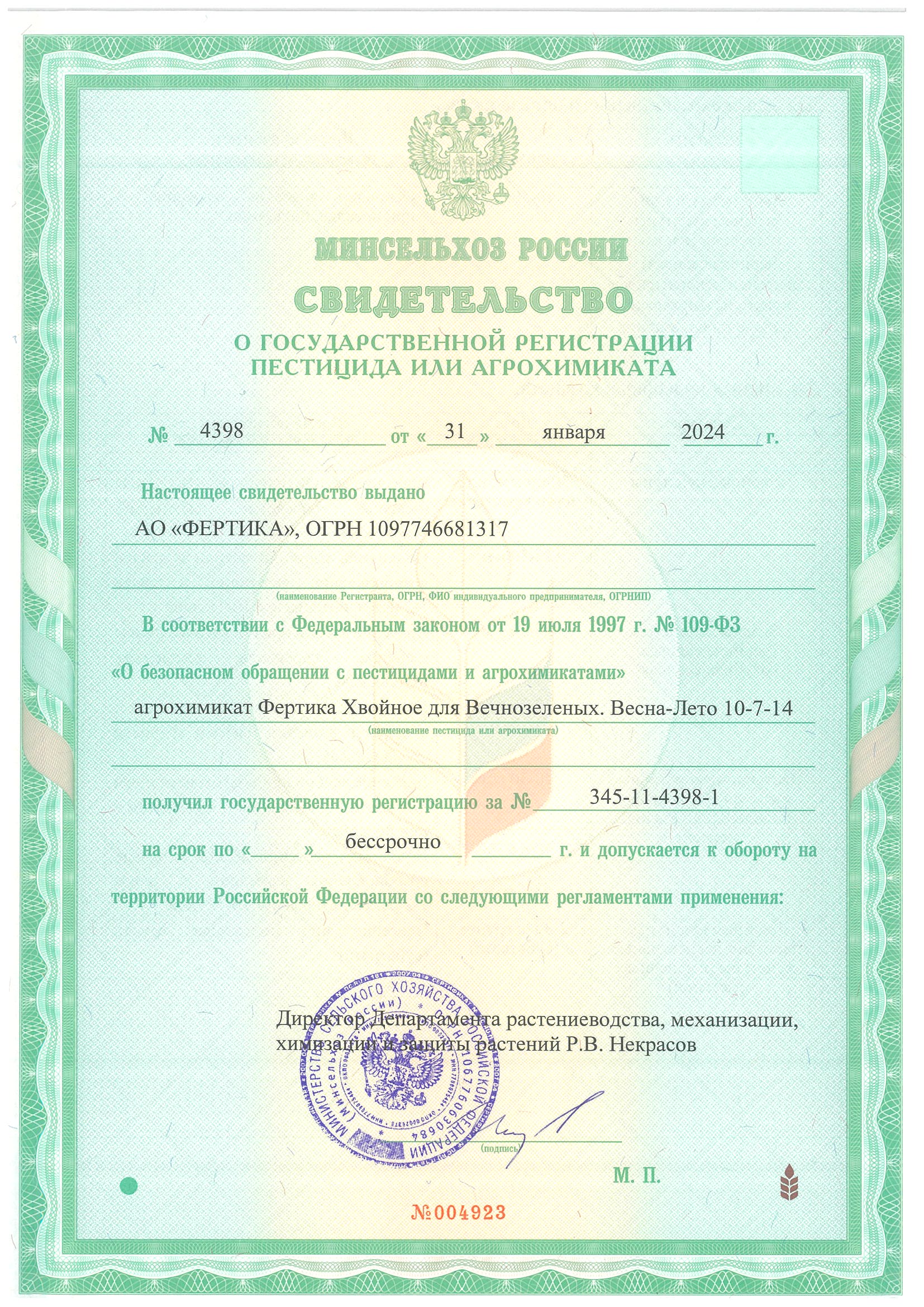 Обеспечивает изумрудный цвет для хвойных растений благодаря повышенному количеству магния, серы и железа