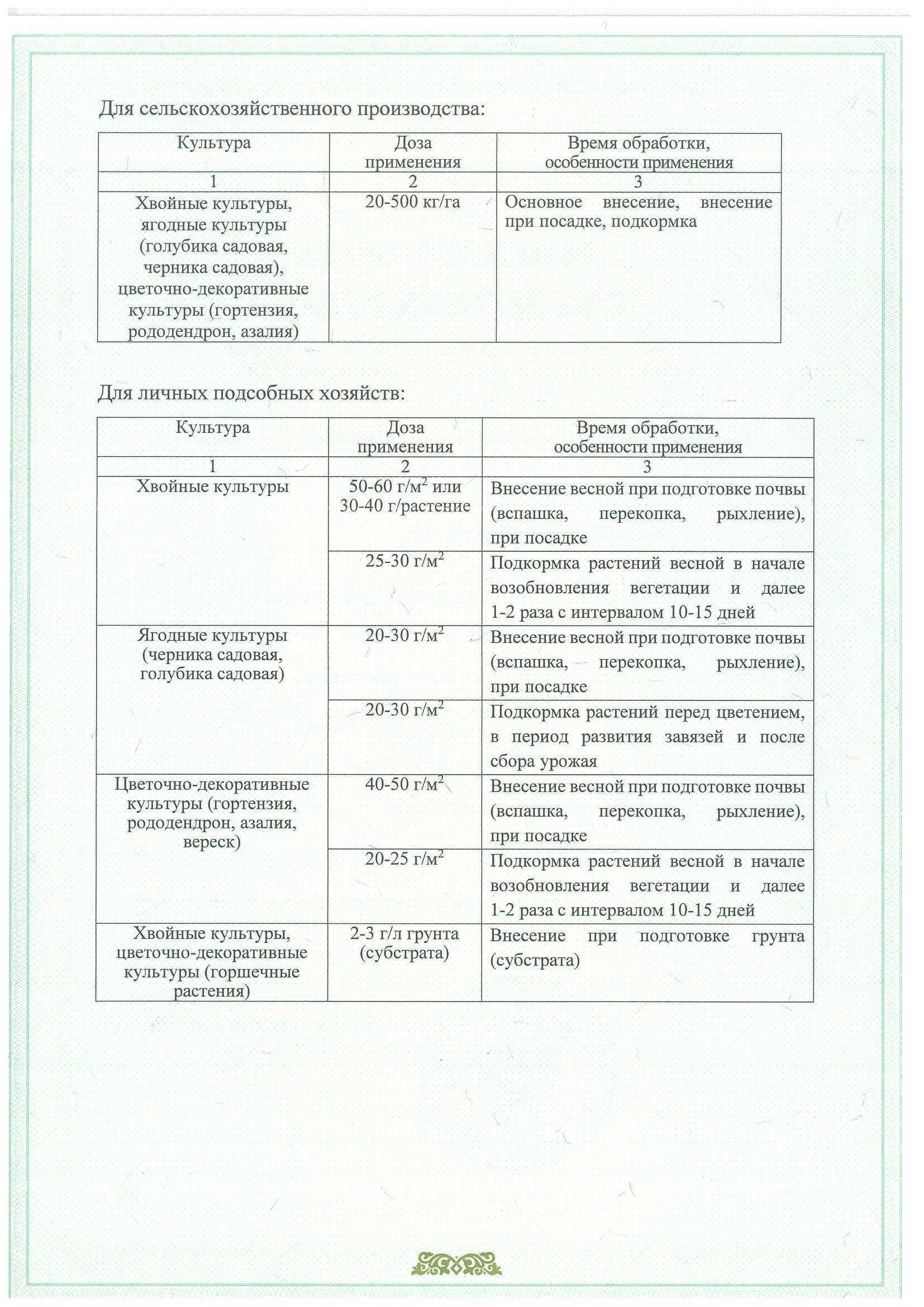 Способствует отличному росту всех хвойных растений, рододендронов, азалий, гортензий, альпийской розы, садовой черники и др. в постоянно меняющихся климатических условиях
