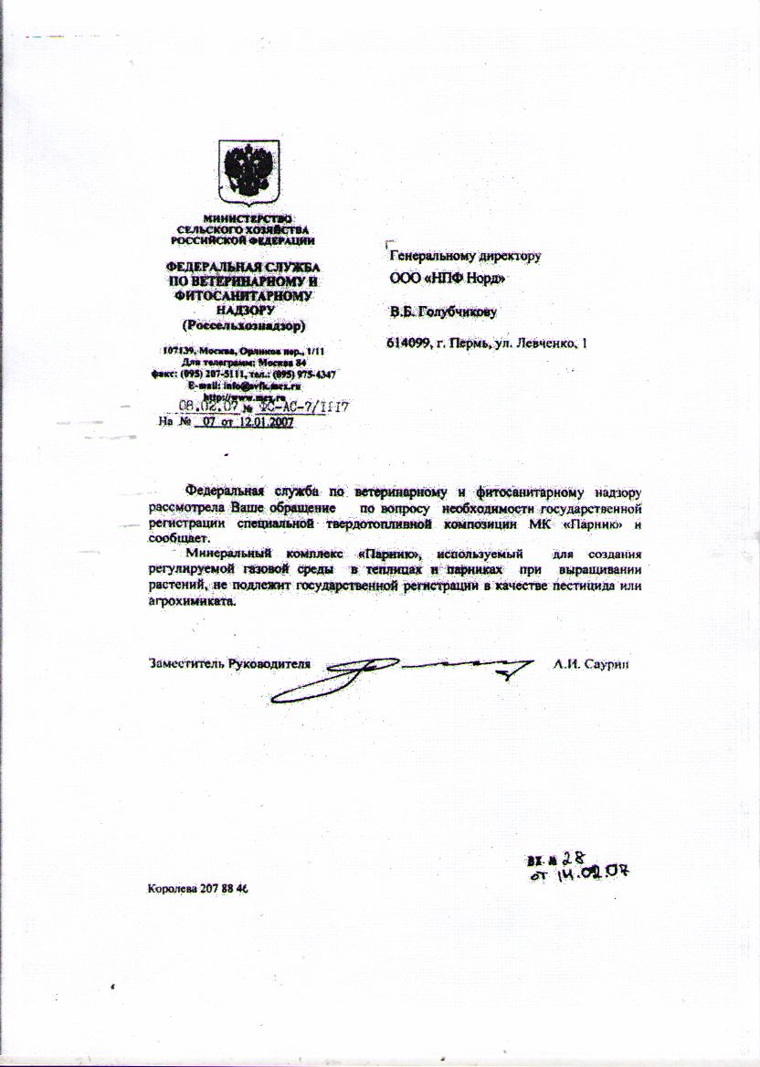 Государственная регистрация- информ.письмо №ФС-АС-7/1117 от 08.02.2007 выдано МСХ РФ; Сертификация-информационное письмо №101-кс/804 от 31.07.2014 выдано ООО НПФ "Норд"
