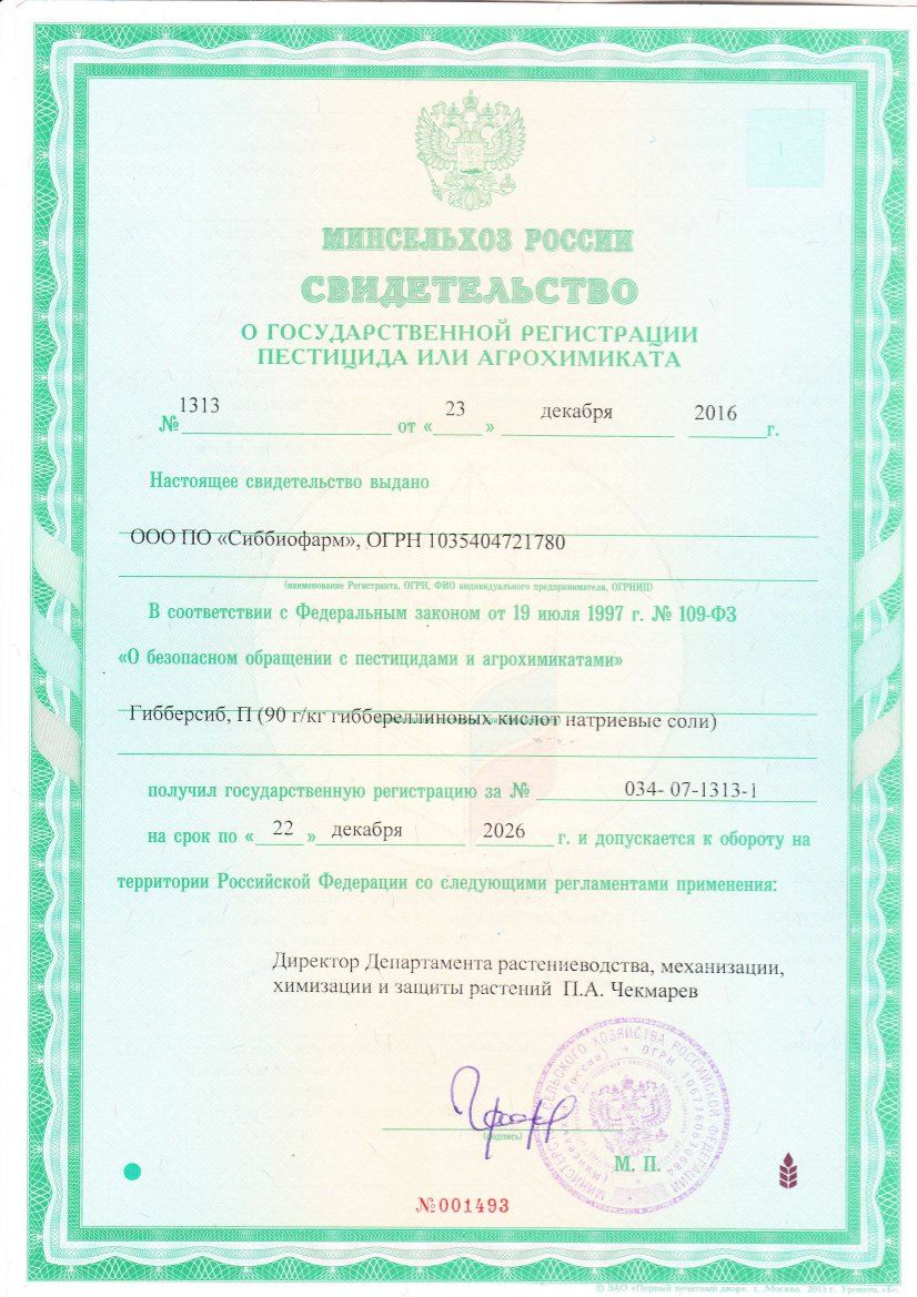 Гиббереллиновых кислот натриевые соли, 5,5 г/кг.