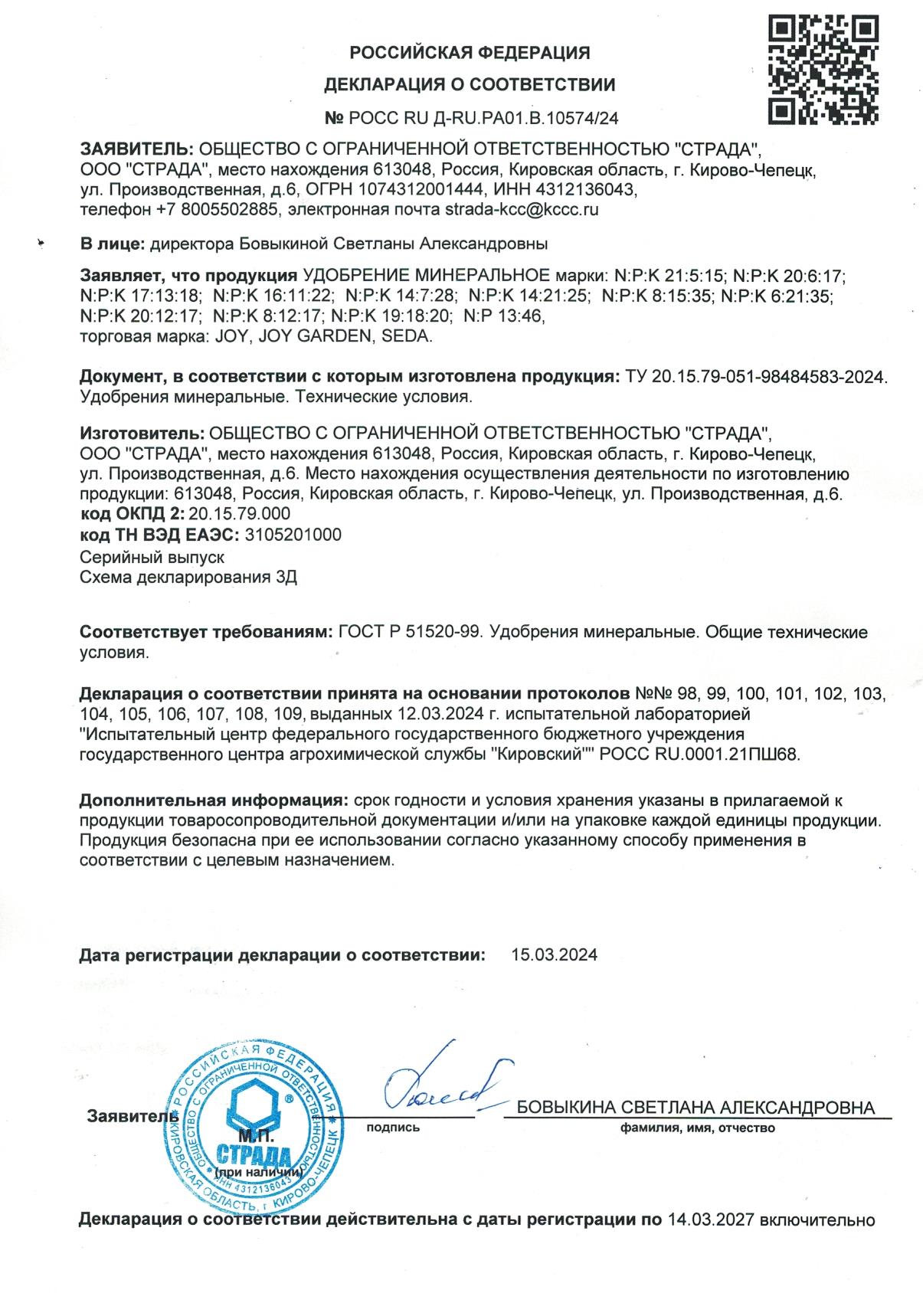Водорастворимое NPK удобрение с повышенным содержанием калия