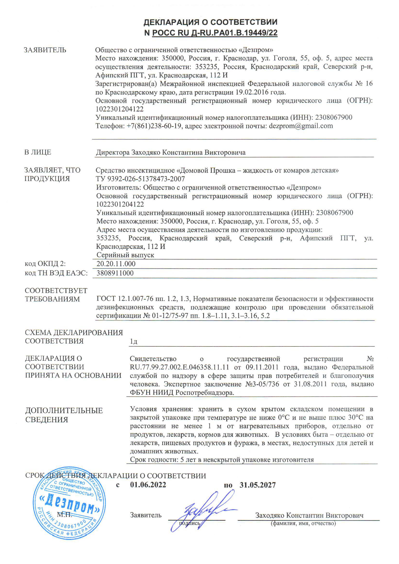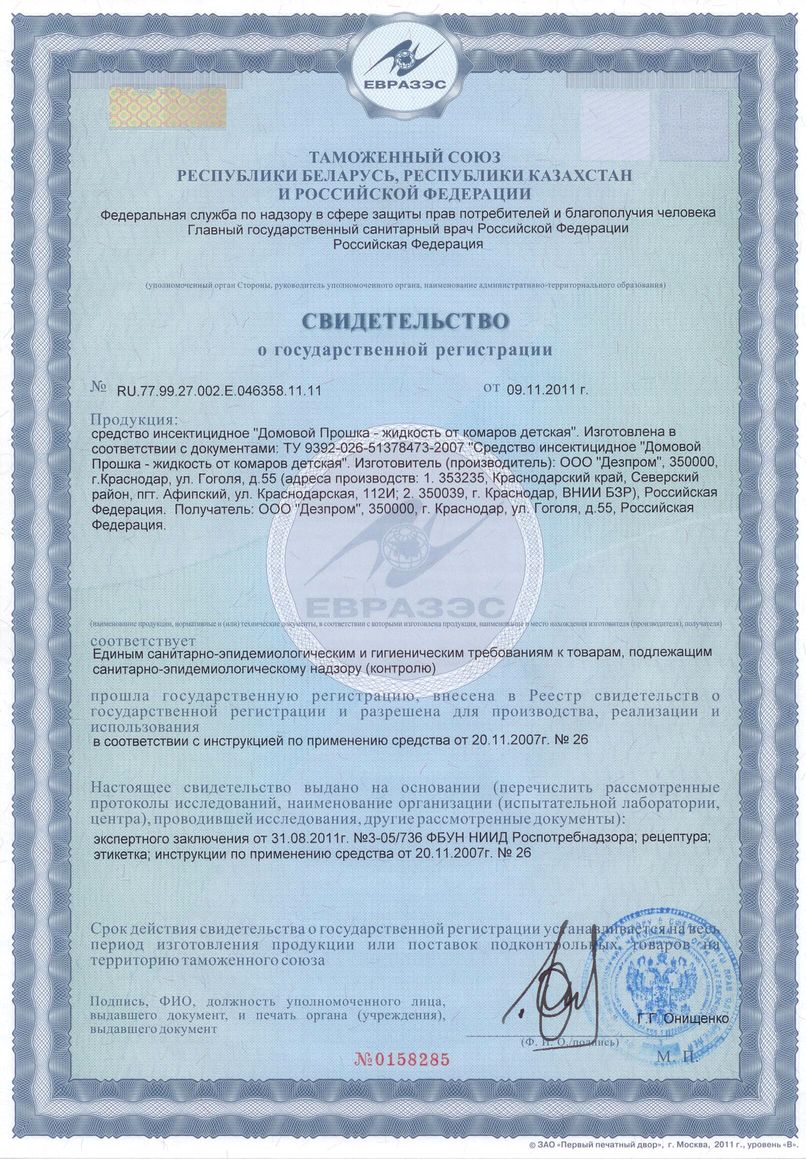 Назначение: для уничтожения комаров в помещениях в присутствии детей любого возраста.