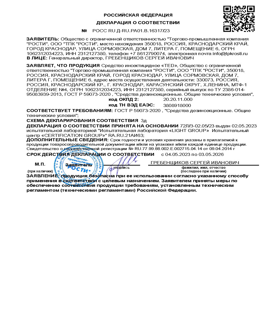 Активное вещество препарата – мощный инсектицид, обладающий почти мгновенным эффектом. Благодаря стабильности действующего вещества, препарат отличается выраженным пролонгированным действием.