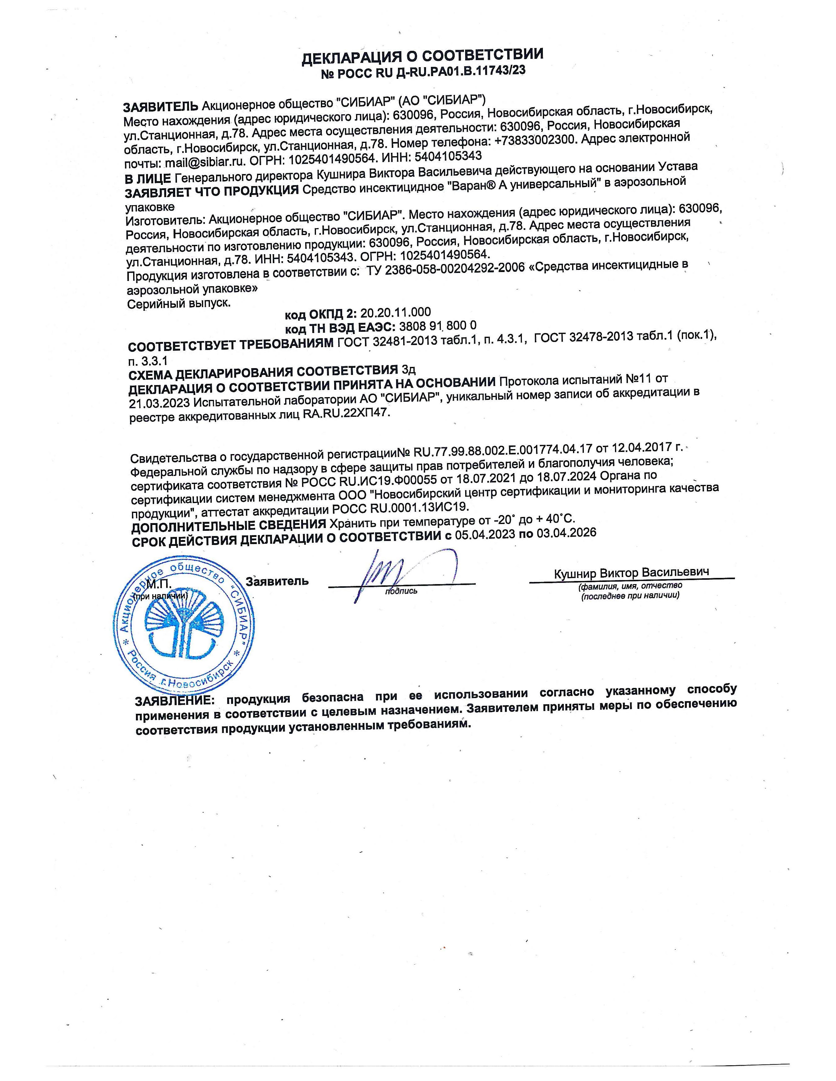 Препарат без запаха универсального назначения с повышенным содержанием активного компонента, для уничтожения ползающих насекомых (тараканов, муравьёв, клопов и т.д.) и летающих насекомых (мух, бабочек, моли комаров), обладающий мгновенным и остаточным действием.
