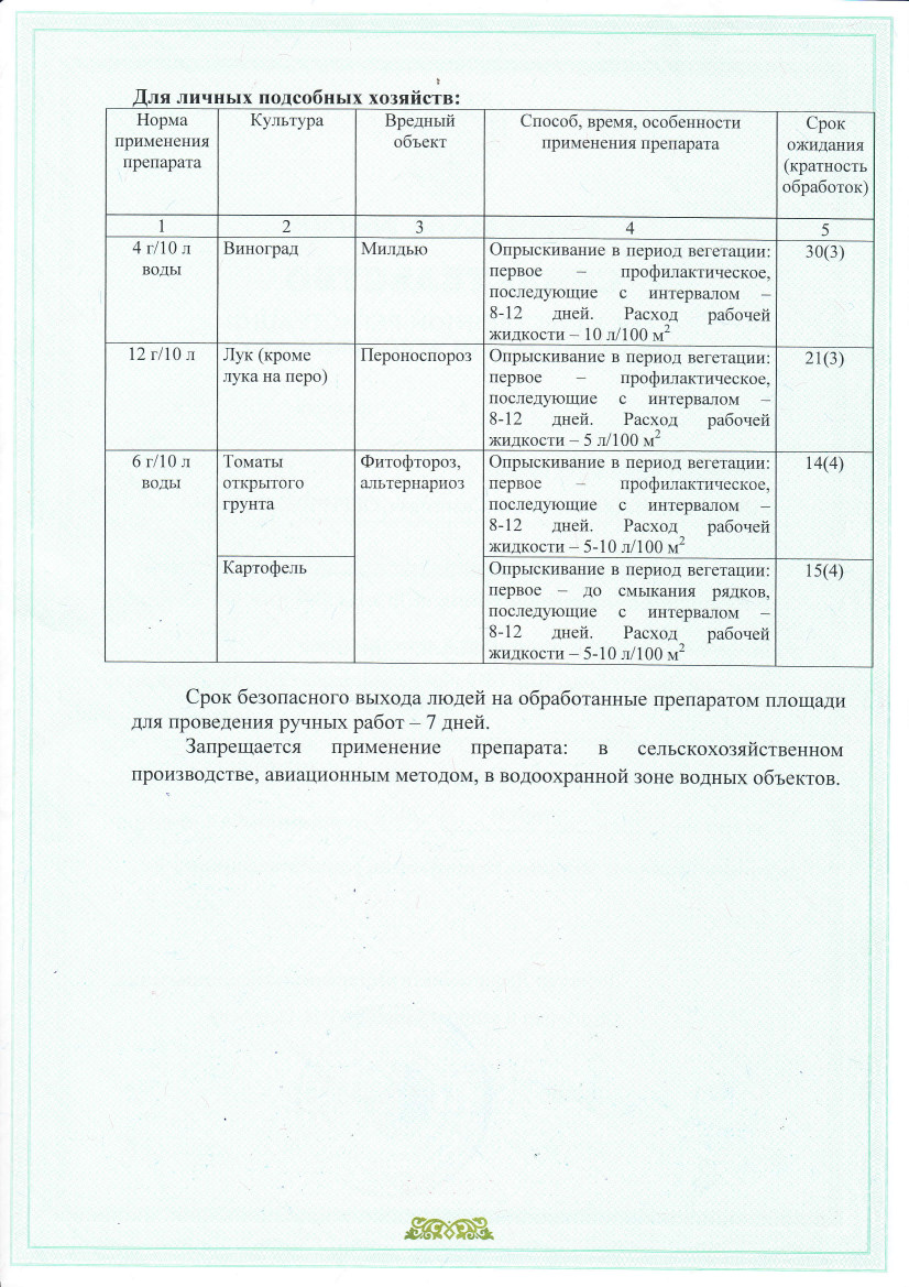 системный компонент цимоксанил быстро проникает внутрь листа и стебля, блокируя развитие болезни