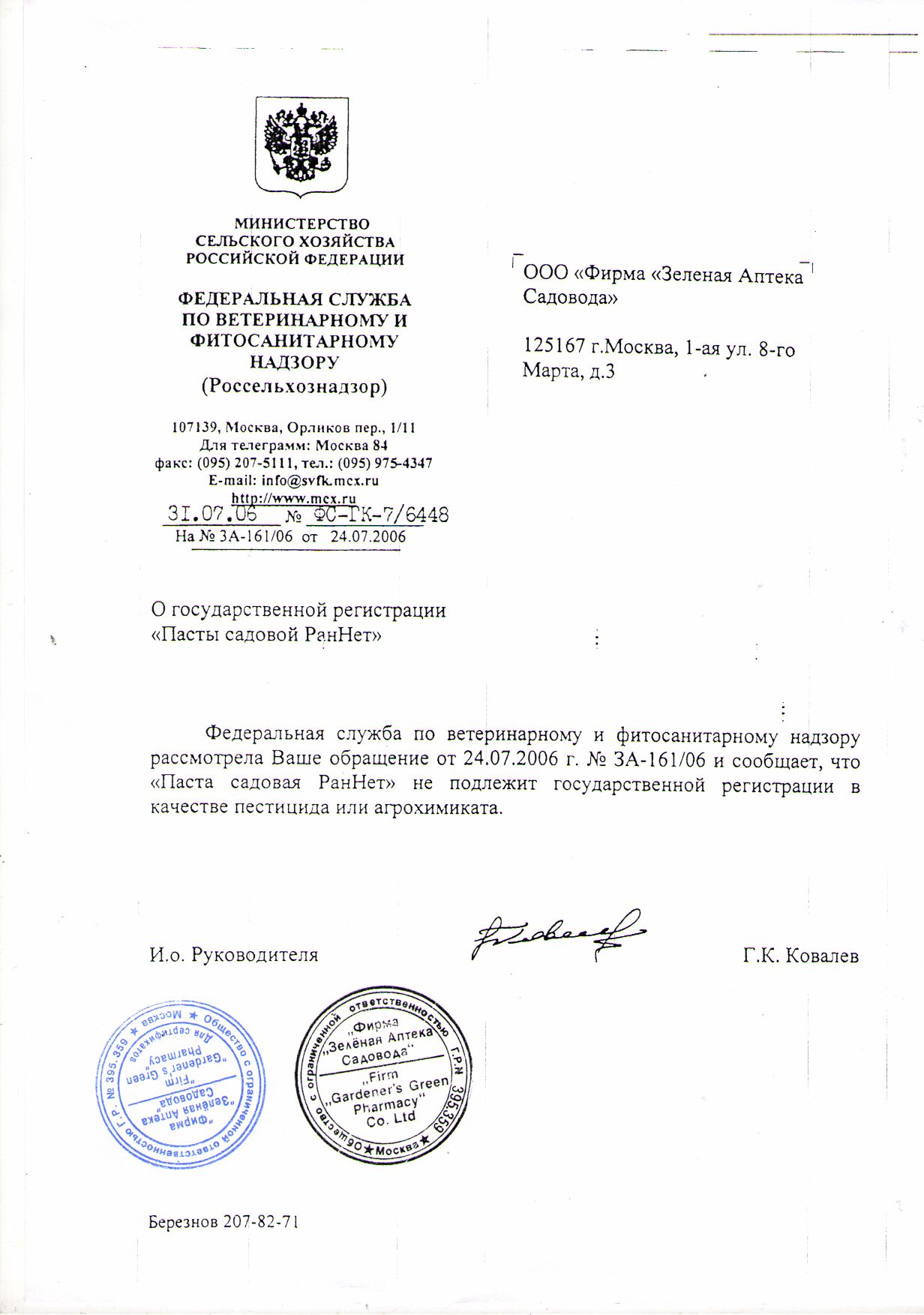 Государственная регистрация-информационное письмо №ФС-ГК-7/6448 от 24.07.2006 выдана МСХ РФ; Сертификация-информационное письмо №101-кс/623 от 21.10.22 выдано ОС продукции АО "ВНИИС"