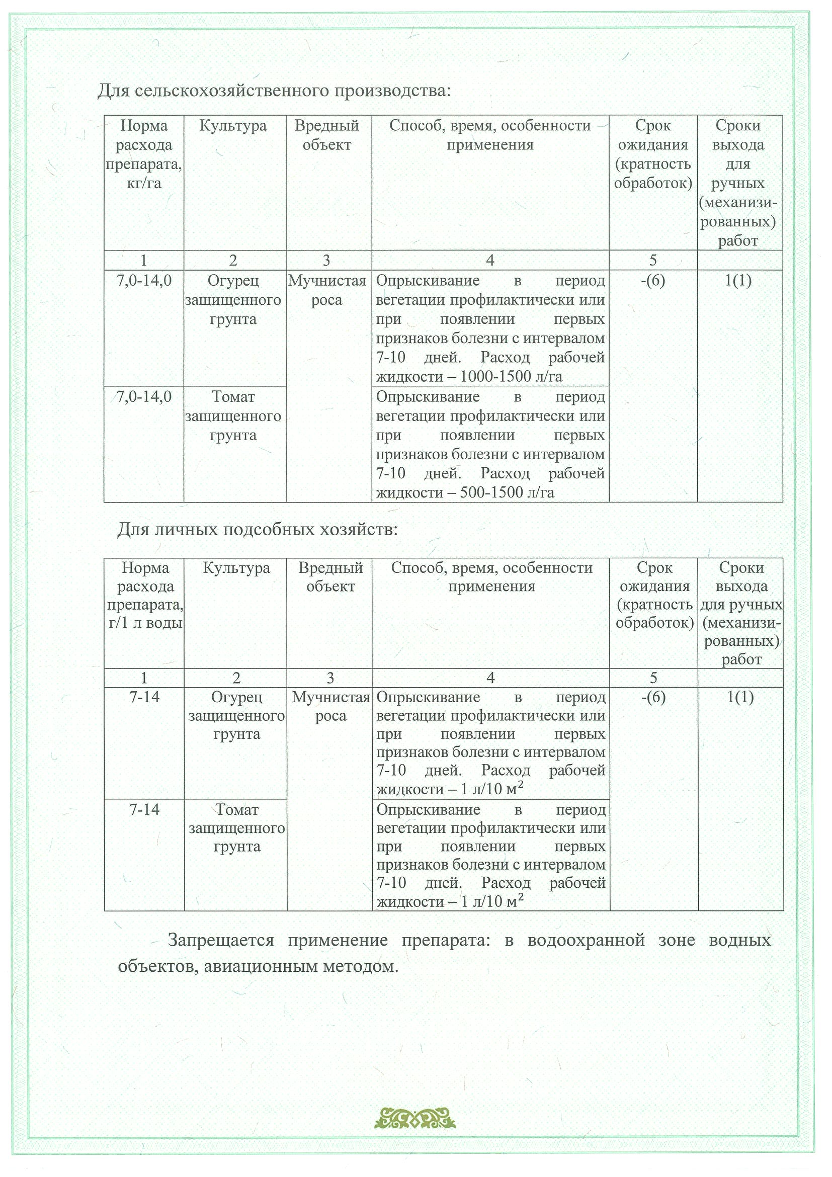 1-3 Роза защищенного грунта Мучнистая роса Обмакивание черенков перед посадкой в 0,1-0,3%-й суспензии препарата.