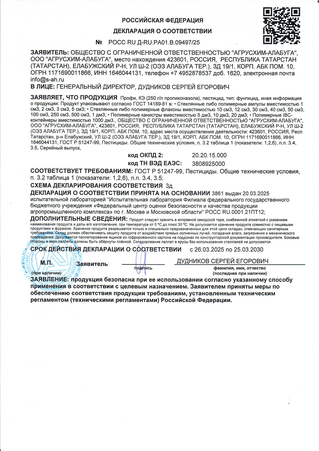 Действующее вещество: 250 г/л пропиконазол. Срок годности 3 года.