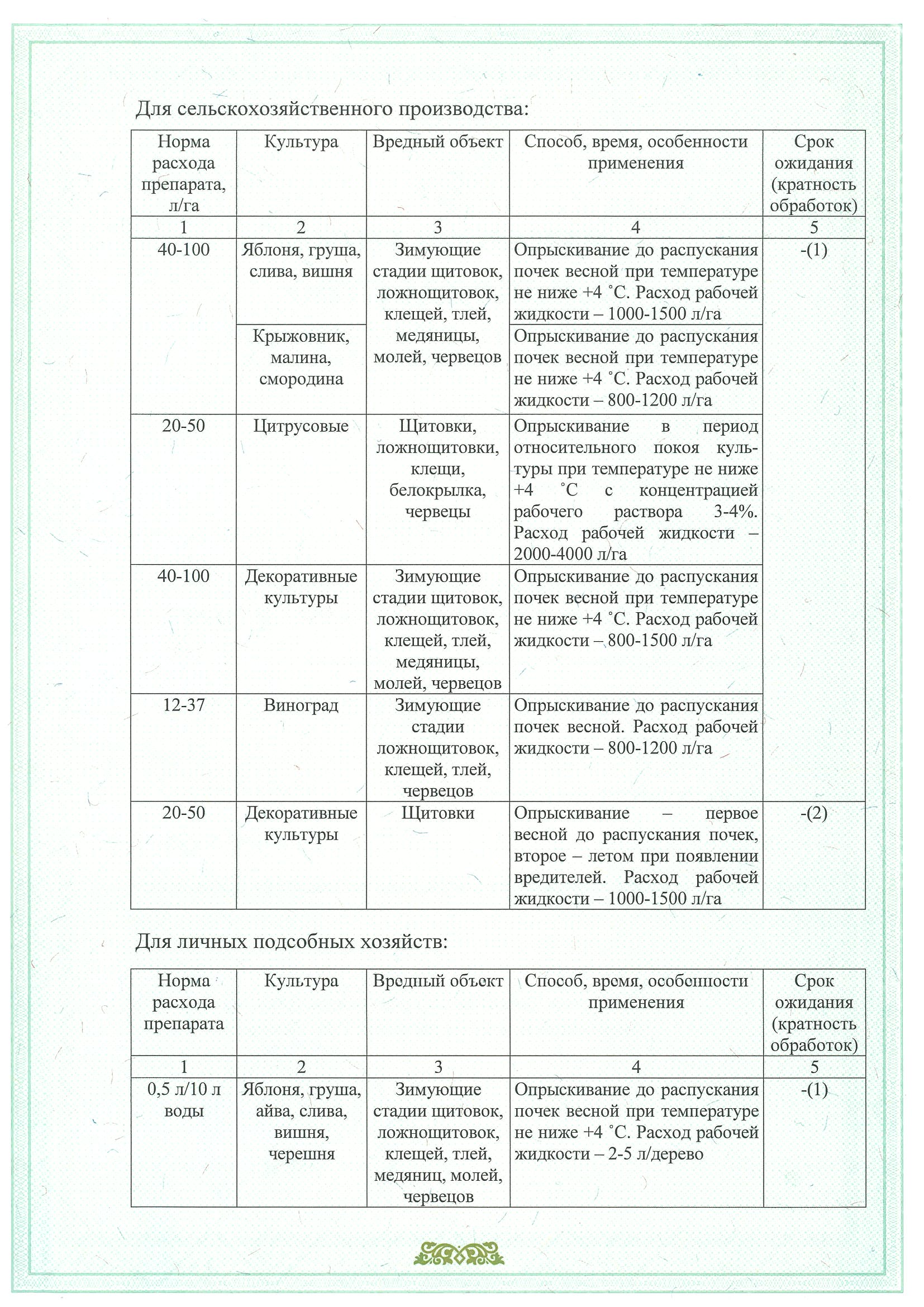 для борьбы с зимующими стадиями щитовок, ложнощитовок, клещей, тлей, медяницы, молей, червецов, белокрылки