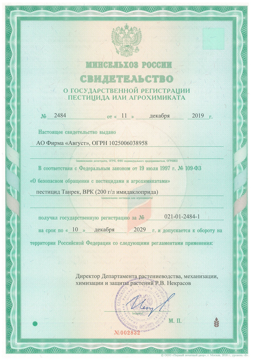 Цена «Танрека» выгодна благодаря экономичному расходу средства: для приготовления 5 л раствора необходим лишь 1 мл жидкости. Продажа препарата осуществляется в магазинах наших партнеров, контакты которых можно найти на сайте.