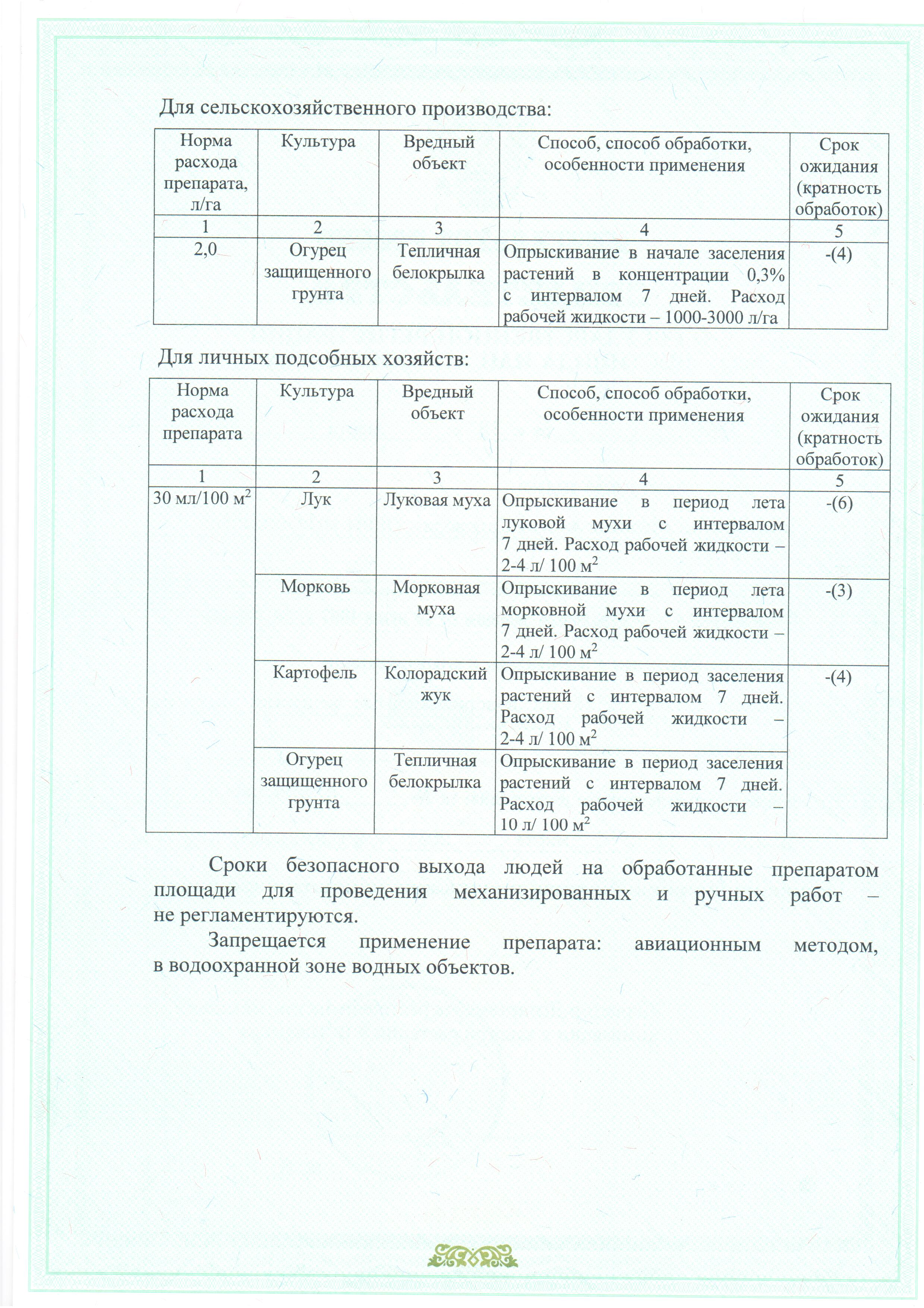 Можно применять за день до сбора урожая, что особенно важно для зеленных культур