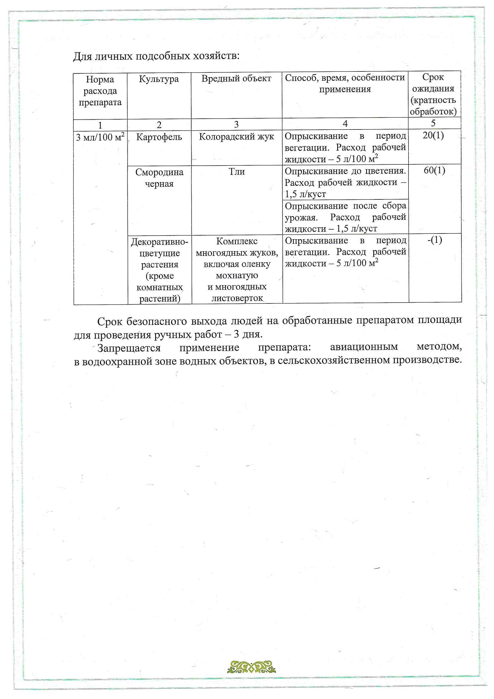 3 мл/100 м2 Картофель Колорадский жук Опрыскивание в период вегетации. Расход рабочей жидкости - до 5 л/100 м2 20 (1)