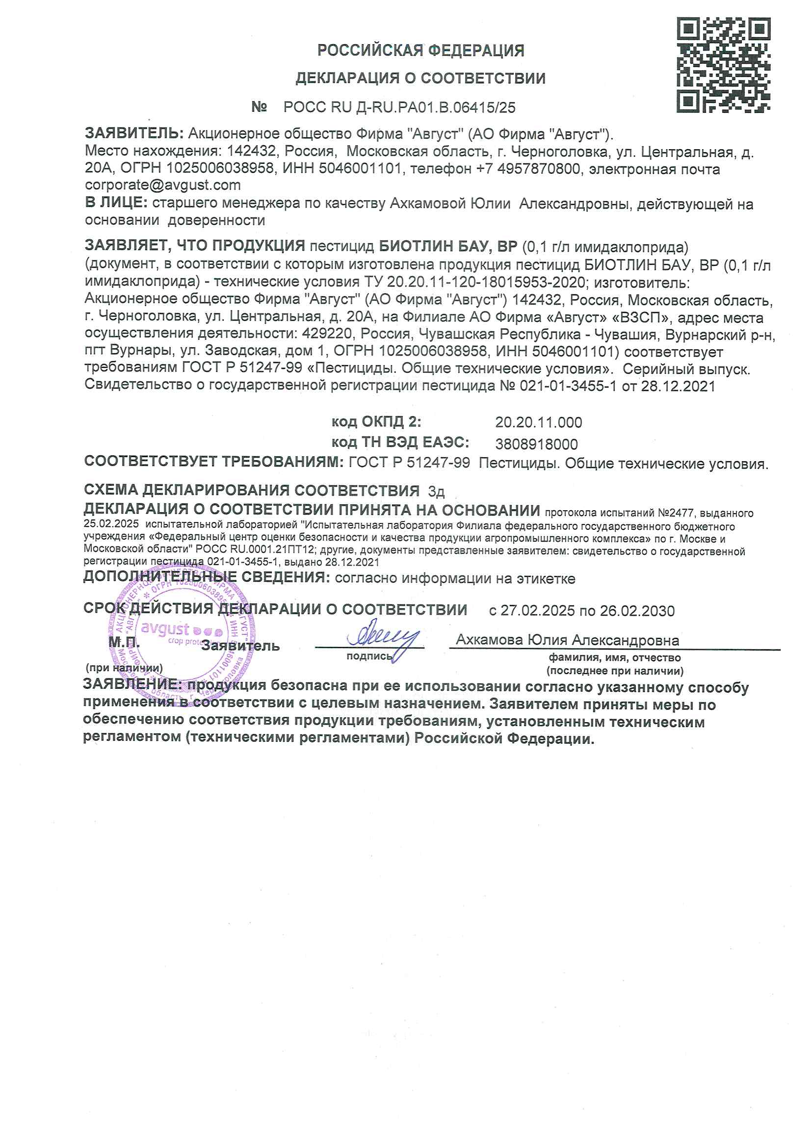 Биотлин БАУ — один из новейших препаратов от сосущих вредителей на овощных культурах и смородине. Можно применять в защищенном грунте. Гарантированно уничтожает тлю, тепличную белокрылку и защищает от появления вредителей на длительный срок.