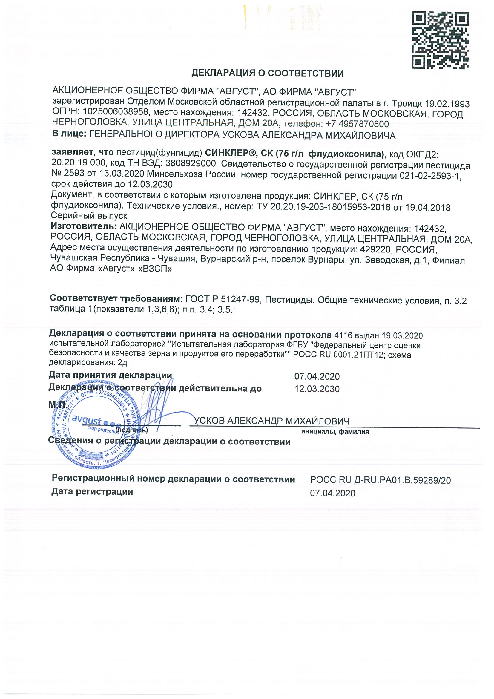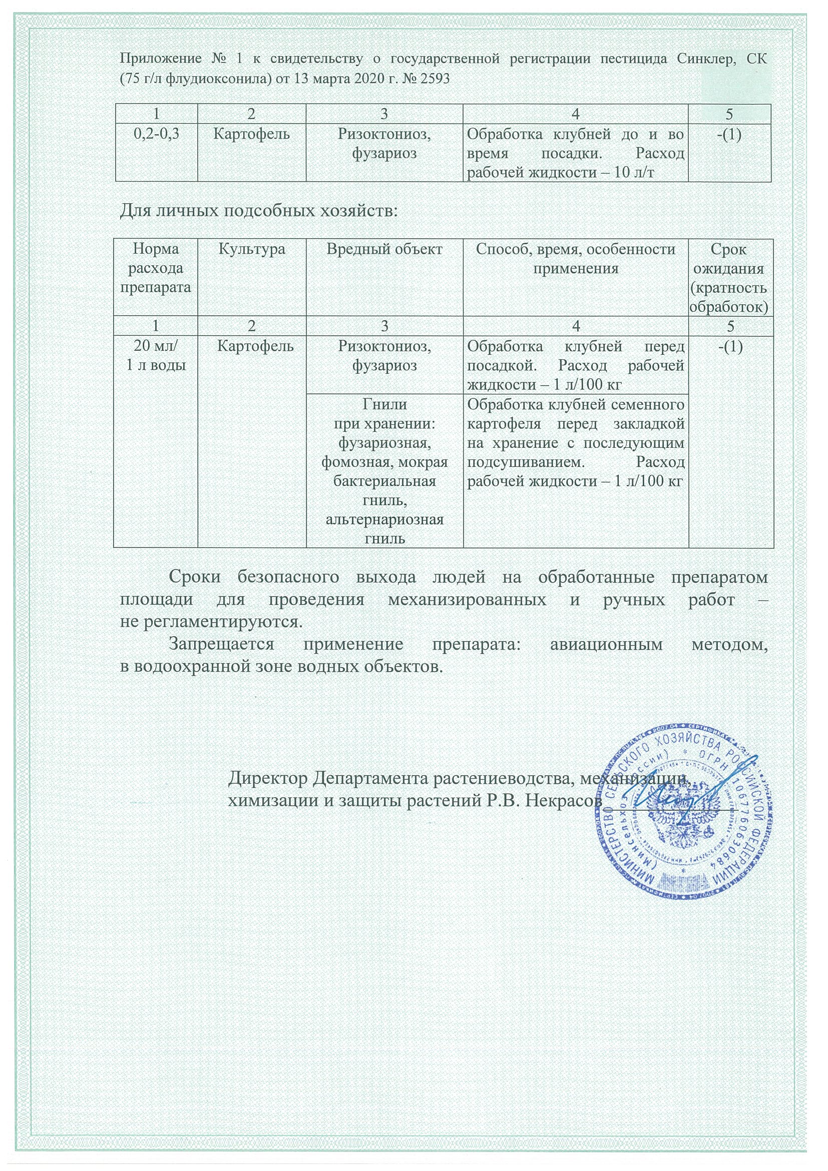 -Синклер 10 мл – фунгицид от гнилей картофеля. Подавляет почвенные инфекции, такие как ризоктониоз (парша) и фузариоз (гнили) на срок от 12 недель.